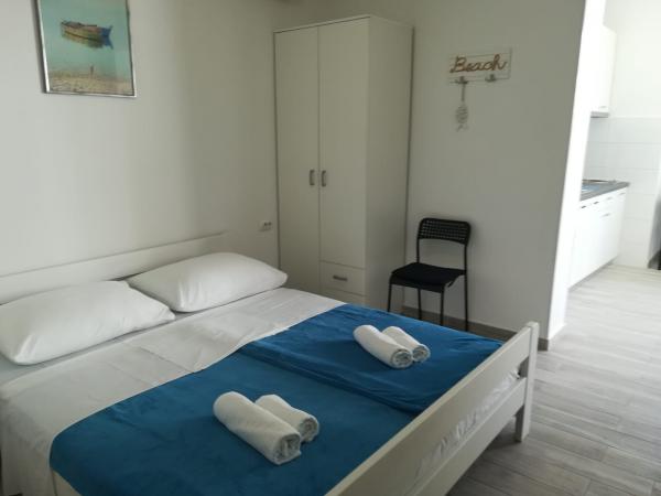 Ein großartiger Ort für Familien und mehr. Gebäude mit einer gemütlichen Atmosphäre, tolle Besitzer. Saubere, gemütliche Parkplätze vorhanden. Die Wohnung selbst ist sehr frisch, gut ausgestattet und bietet viel Komfort für 4 Personen. Super große Terrasse. Unsere Wohnung hatte keinen Meerblick und wir haben sie absichtlich gewählt, weil sie sehr ruhig und intim war und das Meer und die schönen Sandstrände direkt gegenüber liegen (ganz in der Nähe der Gassen). Ich kann Maria nur empfehlen und danke für einen schönen Aufenthalt.