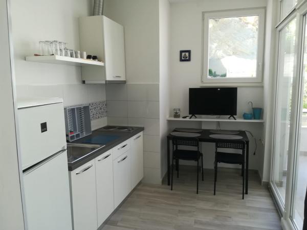 Sehr nette und freundliche Gastgeber, renoviertes Studio - mit Küche, Bad und einer schönen Blumenterrasse, die Abende und Morgenfrühstücke angenehm macht. Die Ausstattung der Wohnung ist neu und funktional. Von der Terrasse haben Sie direkten Zugang zu den Stränden, ca. 20 m Es gibt ein Geschäft und mehrere Restaurants in der Nähe. Parken unter dem Haus. Ruhige Nachbarschaft, 30 Minuten zu Fuß zum Zentrum von Omis. Wir freuen uns sehr, an diesem Ort zu bleiben