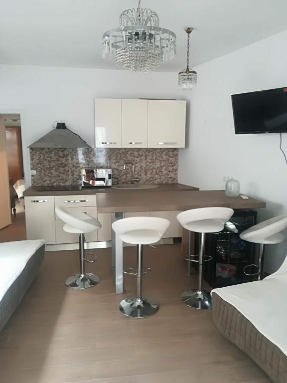 Die Apartments Merion befinden sich in einem Familienhaus im Zentrum der Touristenstadt Duće, die für ihre langen Sandstrände bekannt ist. Das Haus liegt nur 50 Meter vom Strand entfernt und in einer Entfernung von 100 m stehen den Gästen eine ganze Reihe verschiedener Restaurants, Geschäfte, Bäckereien und Obststände zur Verfügung. Der Ort selbst liegt nur 2 km von der Stadt Omiš und der Cetina-Schlucht entfernt. Neben dem üblichen touristischen Angebot bietet der Fluss auch Rafting, Canyoning, Seilrutschen und Erlebnisse, für die Gäste von weit her kommen. Die Lage bietet die Möglichkeit, eine Vielzahl verschiedener Touristenattraktionen zu besuchen, die nur 1-2 Autostunden entfernt sind. Apartment Deluxe und Studio befinden sich im zweiten Stock des Hauses und bieten einen schönen Blick auf das Meer, Apartment im Erdgeschoss im Erdgeschoss und Apartment mit Garten in einem separaten Gebäude hinter dem Haus mit privatem Garten.