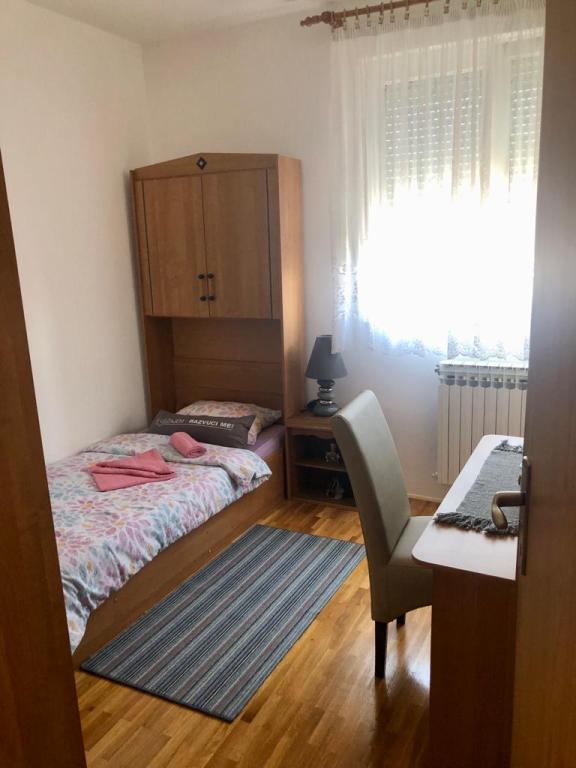 Das Apartment Antonio ist ein voll ausgestattetes zweistöckiges Apartment. Das Apartment verfügt über 5 Betten. Das Apartment verfügt über: 1 großes Doppelbett, 1 Bett für 1 Person und ein zusätzliches Ausziehbett für 2 Personen. Das Apartment verfügt über 2 tragbare Klimaanlagen. Die Wohnung liegt 150 Meter vom Zentrum entfernt an einem Platz in einer schönen ruhigen Straße. Alle Geschäfte, Restaurants, Fastfood, Cafés, Apotheken, Sporthalle, Marktplatz sind leicht zu erreichen. Die Wohnung verfügt über einen eigenen Parkplatz, der durch eine elektrische Rampe gesichert ist.
