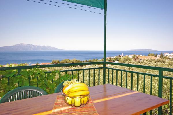 Das Haus hat einen schönen Blick auf das Meer und den Berghang.