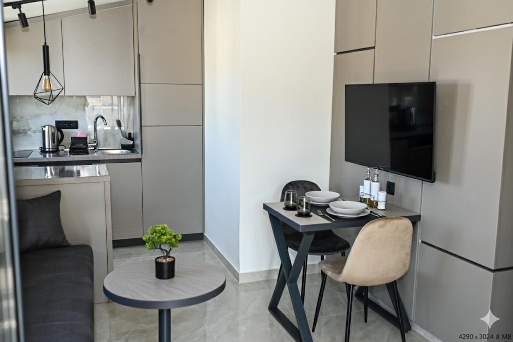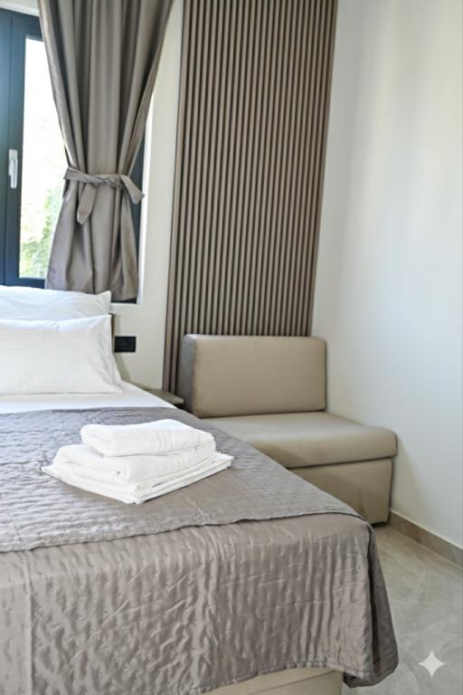 Genießen Sie den Luxus unserer komplett renovierten Apartments, die nach 4-Sterne-Standard eingerichtet sind. In ruhiger Lage gelegen, bieten sie Ihnen einen perfekten Urlaub ohne Lärmbelästigung und sind nur wenige Gehminuten von den schönsten Stränden, Restaurants und Cafés entfernt. Unser Angebot: Erstklassige Ausstattung: Modernes Interieur, Klimaanlage, Highspeed-Internet und TV mit einer großen Senderauswahl. • Sauberkeit und Eleganz: Hohe Hygienestandards und sorgfältig ausgewähltes Design für maximalen Komfort. • Privater Parkplatz: Ein sicherer Stellplatz für Ihr Fahrzeug steht Ihnen auf dem Gelände zur Verfügung. • Gastfreundschaft: Wir beraten Sie gerne zu den besten Restaurants, Ausflügen und Sehenswürdigkeiten der Umgebung. Hinweise: Rauchen und Haustiere sind in der Anlage nicht gestattet, um die Frische und Qualität der Räumlichkeiten für alle unsere Gäste zu erhalten. Erleben Sie einen perfekten Urlaub in Eleganz und Ruhe. Herzlich willkommen!