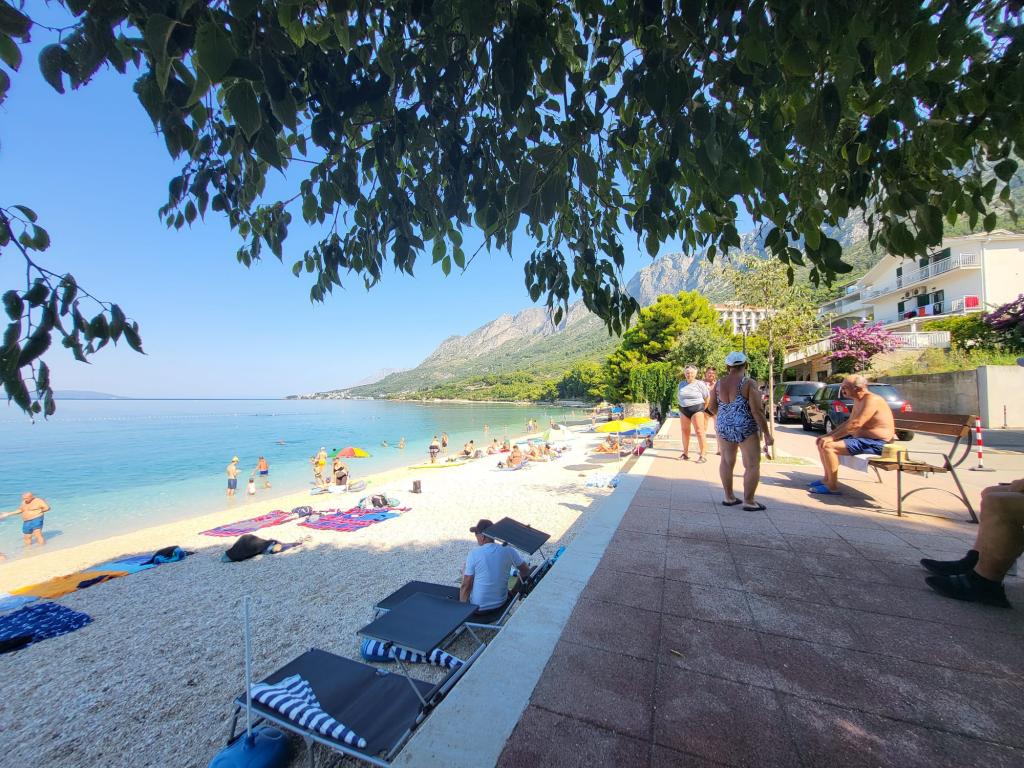 Unser Familienhaus liegt in erster Reihe zum Meer, direkt an einem wunderschönen, schattenspendenden Strand – ideal für einen unbeschwerten Urlaub. Das Haus befindet sich in einem ruhigen Teil von Gradac und ist perfekt für Familien mit Kindern und Paare, die Entspannung, Ruhe und authentisches mediterranes Flair suchen. Wir bieten unseren Gästen sechs komplett neu eingerichtete Wohneinheiten: drei modern ausgestattete Studio-Apartments mit jeweils eigenem Balkon und drei Zimmer mit eigenem Bad, ebenfalls mit Balkon und einer modernen, voll ausgestatteten Gemeinschaftsküche. Alle Wohneinheiten sind hell, gemütlich und komfortabel eingerichtet. In unmittelbarer Nähe des Hauses befinden sich Cafés, Restaurants, eine Bäckerei und ein Geschäft. Das Stadtzentrum ist bequem in 7–8 Minuten zu Fuß erreichbar.