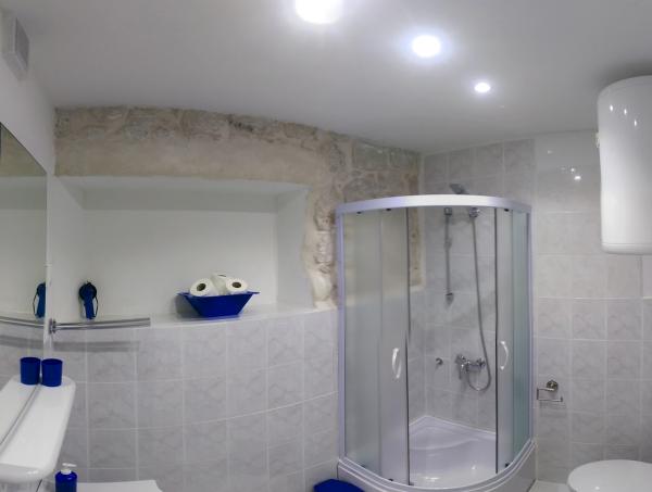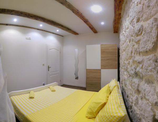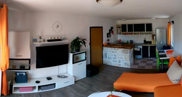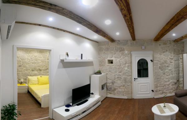 Steinhaus mit zwei neuen Wohnungen. Die Anlage befindet sich 5-6 Minuten zu Fuß bergab vom Zentrum von Graz, Strand, Meer, Restaurants, Cafés und Geschäften. Die erste Wohnung (2 2) Wohnung im Stein Teil des Hauses im Erdgeschoss, vollständig im alten dalmatinischen Stil restauriert. Es hat ein Schlafzimmer mit einem Doppelbett und ein Wohnzimmer mit Sofa, das die Abmessungen eines anderen großen Bett für zwei reicht. Es hat auch eine Küche und ein Bad mit Dusche. Es ist mit Klimaanlage, Internetanschluss, LCD TV, Satellit. Es hat einen eigenen Garten mit Tisch und Stühlen. Die zweite Wohnung (4 2) ist auf der ersten Etage, hat zwei Schlafzimmer mit zwei Doppelbetten, ein großes Wohnzimmer mit einem Schlafsofa große, große, voll ausgestattete Küche, Bad und Balkon mit Tisch und Stühlen. Die Wohnung verfügt über Internet, Klimaanlage, LCD-TV und Satellit. Parken ist hinter dem Haus und ist kostenfrei. Alle Gäste können den ganzen Garten, Outdoor-Küche, ein Zimmer mit Waschmaschine, Grill und ein großer Tisch mit Stühlen verwenden
