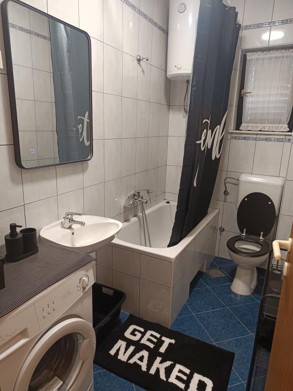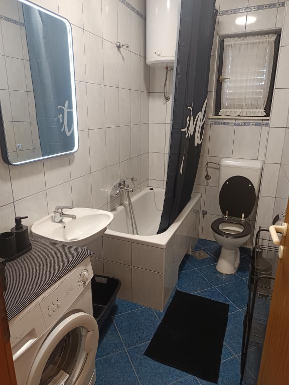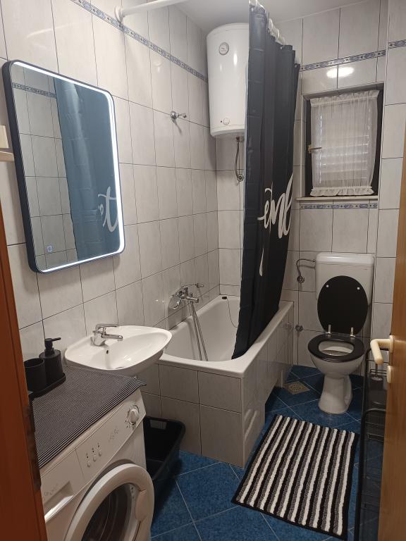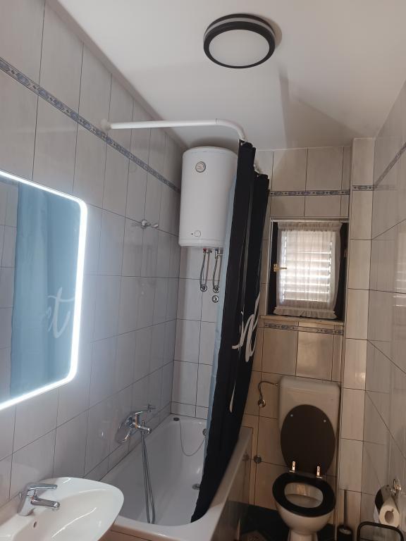 Die Anlage liegt direkt am Meer unter der Nordseite des Hügels Jelinjak mit dichten Pinienwald und unter der Adriastraße auf der Südseite des langen schönen Bucht, wo Siedlungen befinden Grebaštica und Sparadici abgedeckt entfernt. Es ist ein neu erbautes Gebäude, das aus drei Etagen und ein Erdgeschoss durch den Eigentümer der Wohnung und ersten Stock mit zwei Wohnungen und zweiten Stock mit einer Wohnung verwendet wird, besteht .. Alle Wohnungen, vor allem die auf der zweiten Etage, die modern eingerichtet und ausgestattet ist, Balkon mit einem schönen Blick auf das Meer und den größten Teil des Dorfes Grebaštica vorausgesetzt, es gibt eine Terrasse in der ersten Etage, der größten, die sich von einer Seite zur anderen Objekt. Bei Verfügbarkeit von nur einem Terrasse der Wohnung können als eine Einheit verwendet werden, während im Falle der Verfügbarkeit beider Wohnungen Terrasse diagonal geteilt hohe Bildschirm, die einen guten Sichtschutz für jeden Benutzer der Wohnung bietet. Der Strand ist ein Beton-Kies mit schattigen Bereichen unter Bäumen.