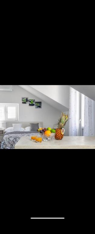 Elegant eingerichtete Studio-Apartments im Herzen von Hvar bieten die perfekte Kombination aus Komfort und erstklassiger Lage. Die hellen und modernen Apartments verfügen über ein komfortables Doppelbett (160 × 200 cm), eine voll ausgestattete Küchenzeile mit allen Annehmlichkeiten (Kühlschrank mit Gefrierfach, Wasserkocher, Toaster, Kochplatten, Mikrowelle, Geschirrspüler), ein Badezimmer mit ebenerdiger Dusche, Klimaanlage und jeweils eine private Terrasse (mit Gartentisch, Stühlen und Liegestühlen) mit einem atemberaubenden Blick auf die Altstadt und den malerischen Hafen von Hvar. Erleben Sie das Beste von Hvar direkt vor Ihrer Tür: charmante Cafés, erstklassige Restaurants, gemütliche Frühstückslokale, lokale Boutiquen und Souvenirläden. Der Hauptplatz mit der St.-Stephans-Kathedrale und dem ältesten öffentlichen Theater Europas ist nur 3 Gehminuten entfernt. Sie wohnen mitten im Zentrum von Hvar und dennoch in einer ruhigen Straße, die Ihnen eine erholsame Nachtruhe garantiert.
