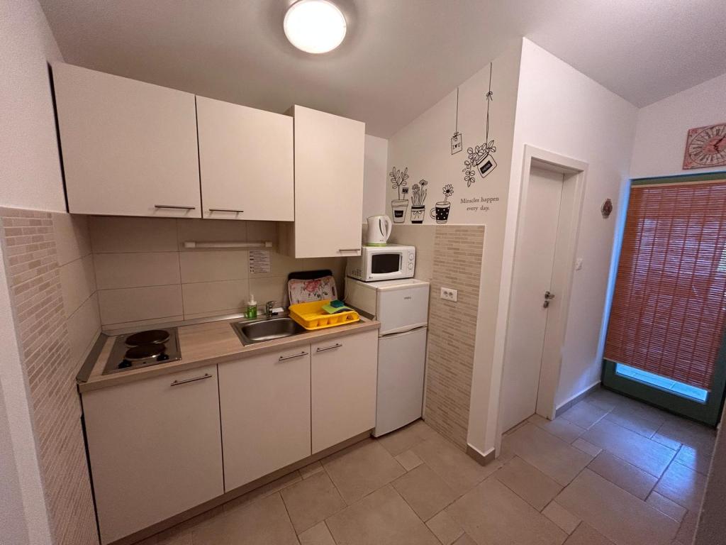 Zwei neue voll ausgestattete Apartments in einem alten Steinhaus, in ruhiger und zentraler Teil derselben zwischen den beiden Buchten. Die Apartments befinden sich nur 3 Gehminuten vom Stadtzentrum, Geschäfte, Strände, Spielplätze, Restaurants, Cafés. Die Gäste in den Hinterhof Grill. Im öffentlichen Bereich gibt es Sat-TV.