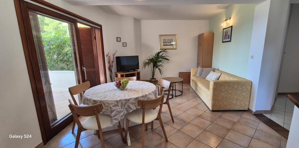 Kurtaxe ist im Preis inbegriffen.Wir haben 4 Wohnungen: PENTHOUSE ist 119 m2 groß, befindet sich im 2. Stock und besteht aus 2 Schlafzimmern (5 Betten), 2 Badezimmern (Dusche und Badewanne), geräumiger Küche mit Geschirrspüler, Backofen, Esszimmer und großem Wohnzimmer mit ausziehbarem Sofa ( 140 x 190) und eine große Terrasse von 20m2 mit Überdachung. A1 hat 90 m2, besteht aus 2 Schlafzimmern (5 Betten), 2 Badezimmern (Dusche und Badewanne), einer geräumigen Küche mit Geschirrspüler, Backofen, Esszimmer und einem großen Wohnzimmer mit einem Schlafsofa (160 x 190) und einer großen Terrasse von 20m2 mit Überdachung. A2 ist ein Studio-Apartment im Erdgeschoss mit einem Doppelbett, Bad, Küche und Terrasse. A3 befindet sich im 1. Stock und besteht aus einem Schlafzimmer mit Doppelbett, einer Küche mit Schlafsofa und einer Terrasse.
