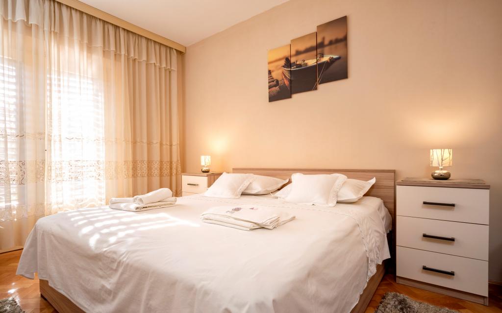 Das komplett und modern eingerichtete Apartment für 6 Personen befindet sich im Zentrum von Jelsa auf der Insel Hvar und ist ideal für Familien mit Kindern. Es befindet sich im zweiten Stock des Familienhauses und erstreckt sich über eine Fläche von 85m2. Die Wohnung verfügt über zwei Schlafzimmer mit Balkon, Bad, Küche, Wohnzimmer mit Schlafcouch. Kostenlose Parkplätze und WI FI inbegriffen.