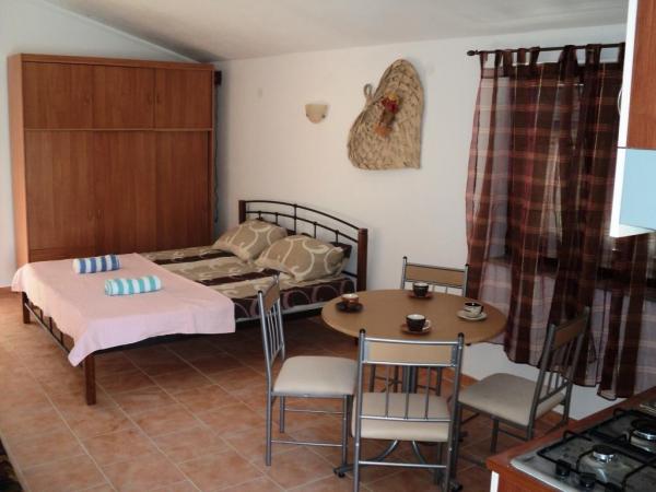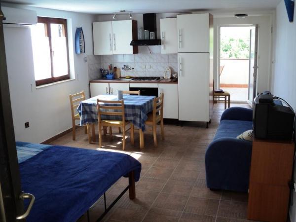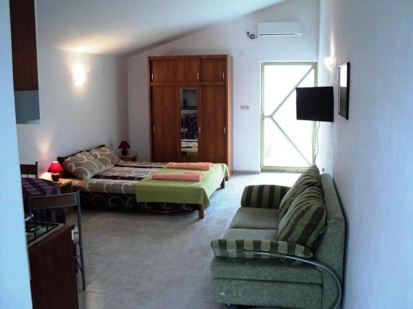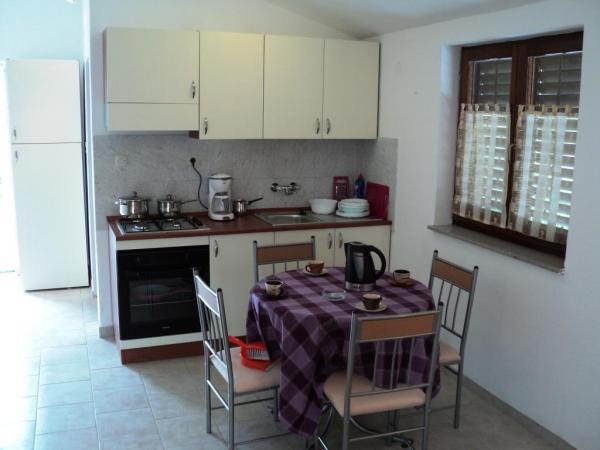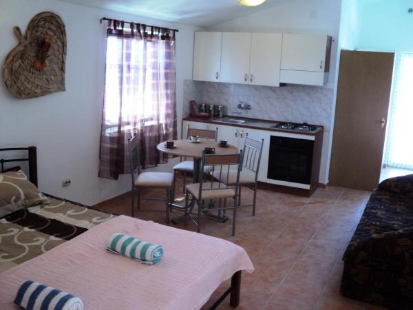 Das Gebäude besteht aus vier gleich großen, modern ausgestatteten Studio-Apartments, zwei im ersten Stock und zwei im Erdgeschoss. Jedes Studio hat eine Fläche von 32 m2, hat einen separaten Eingang, eine große Terrasse von 12 m2 mit Meerblick, Sat-TV, WIFI und Klimaanlage. Die Ausstattung besteht aus großzügigen Betten, Küche mit Backofen und Gasherd, großem Kühlschrank mit Gefrierfach, Wasserkocher, Kaffeemaschine, Abzugshaube usw. Badezimmer mit Toilette, Waschbecken und Dusche. Das Haus verfügt über einen großen und umzäunten Hof zum kostenlosen Parken und Grillen. Zugang zu einem kleinen geschützten Strand über eine eigene Treppe direkt vom Hof in einer Entfernung von ca. 80 m. 100 m vom Haus entfernt befindet sich ein großes Qualitätsrestaurant, eine Pizzeria und eine Eisdiele. Bei uns bekommen Sie einen Urlaub ohne Lärm, wunderschönes klares Meer, freie Sicht auf das Meer und Velebit.
