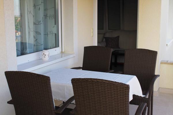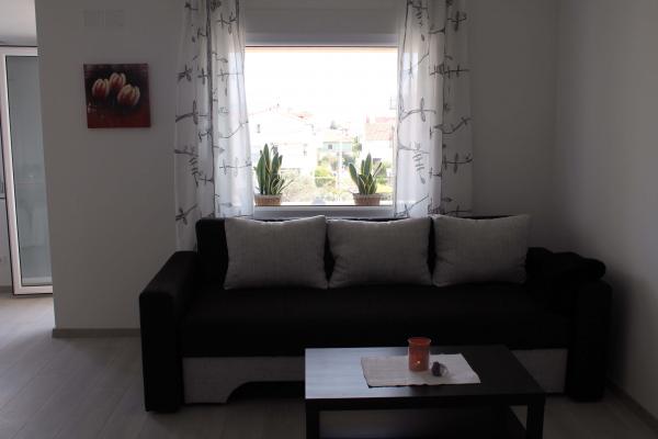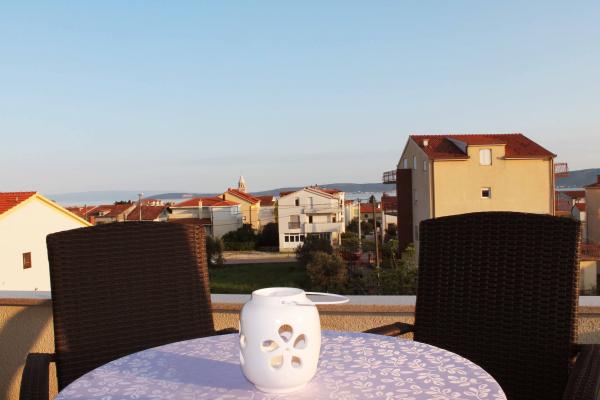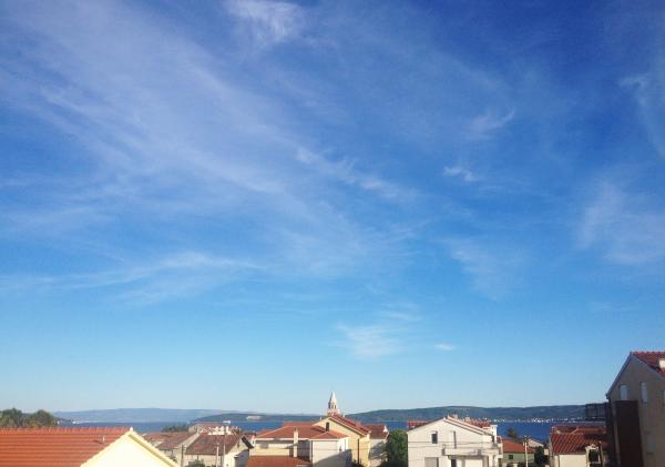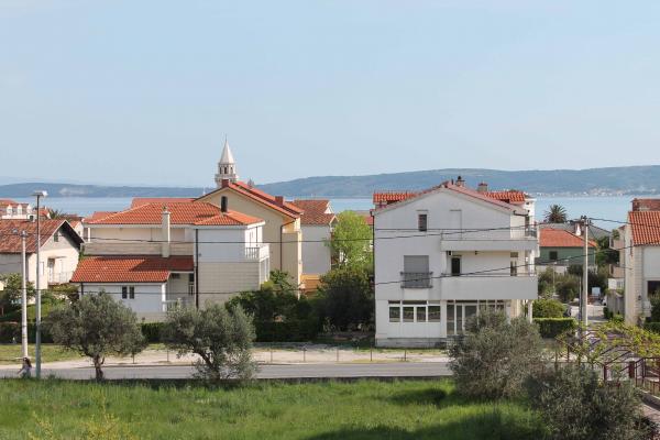 Apartment **** befindet sich auf der zweiten Etage des Hauses. Die geräumigen und modernen Apartments verfügen über einen schönen Blick auf das Meer und das Zentrum (cca350-400m) .In der Nähe liegt der Strand (400 m), Post (300), Bushaltestelle (37 Schuppen Split-Trogir cca250m), Supermarkt (100m) Doctor (60m) .. Das Haus hat eine überdachte Terrasse, Grill und Liegewiese ideale Ort, um Kontakte zu knüpfen und zu entspannen.