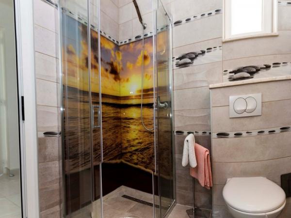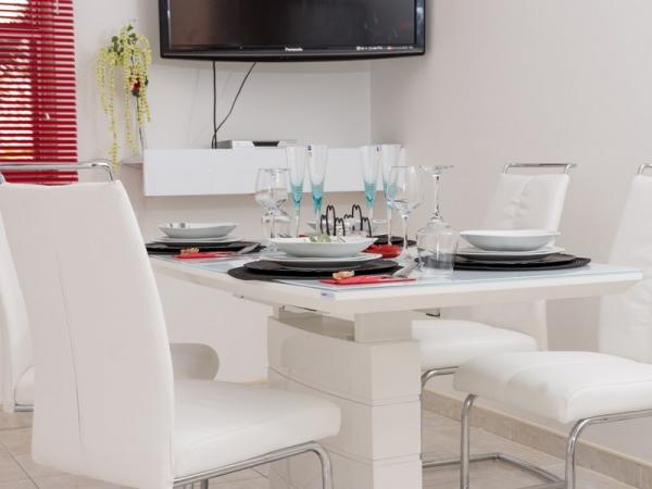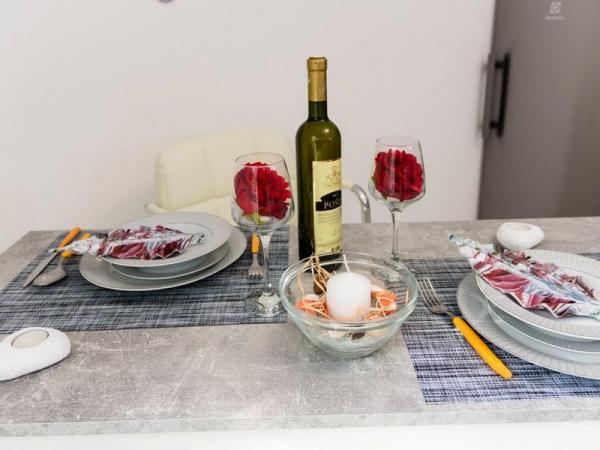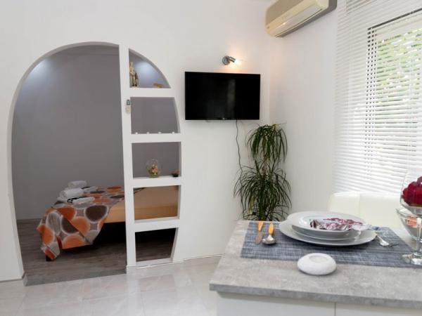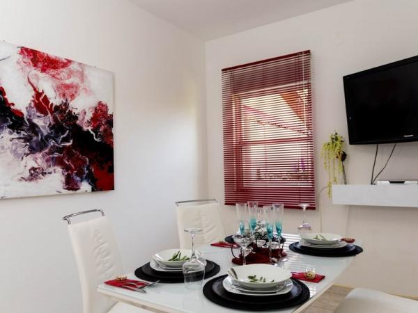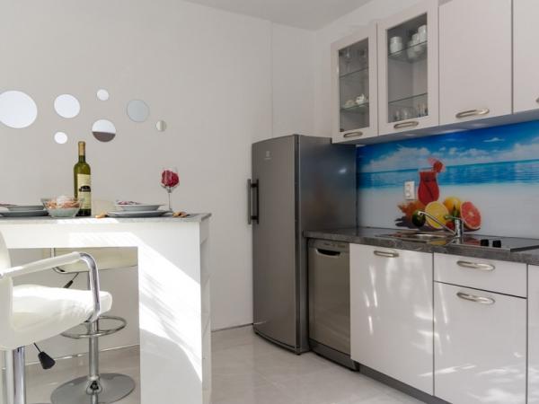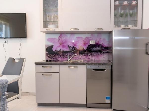 Die voll ausgestatteten und modern ausgestatteten Apartments "Ljiljana" mit sämtlichen Haushaltsgeräten einschließlich Geschirrspülern sowie alle Reinigungsutensilien, die zum Service und zu den hygienischen Notwendigkeiten (Seife, Shampoo, Toilettenpapier) gehören, befinden sich auf der Rasenfläche (ca. 800 m2) mit direktem Zugang zum Strand, und der Strand, der auf demselben Grundstück entstand, ist eine kleine Bucht mit Sandbuchten. Die Essenz des Ortes selbst ist, dass es nicht in der Nähe der Straße liegt und jeder Gast Privatsphäre hat, und die Rasenfläche sowie die Bucht eignen sich für Kinderfreude sowie für einen sorgenfreien Urlaub ihrer Eltern. Neben der Apathie gibt es eine separate, überdachte Terrasse (45 m2) mit Blick auf die gesamte Bucht von Kaštela, die Sie abends und tagsüber genießen können. Der Lärm des Meeres während der Nacht und die Stille, die von Sinfonien unterbrochen wird, verleiht ihr besondere Aufmerksamkeit. Neben der Terrasse stehen den Gästen ein Grill sowie Liegestühle ohne Aufpreis zur Verfügung. Innerhalb der Wohnung befindet sich ein privater, überdachter Parkplatz.
