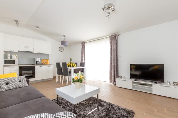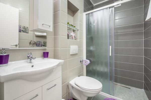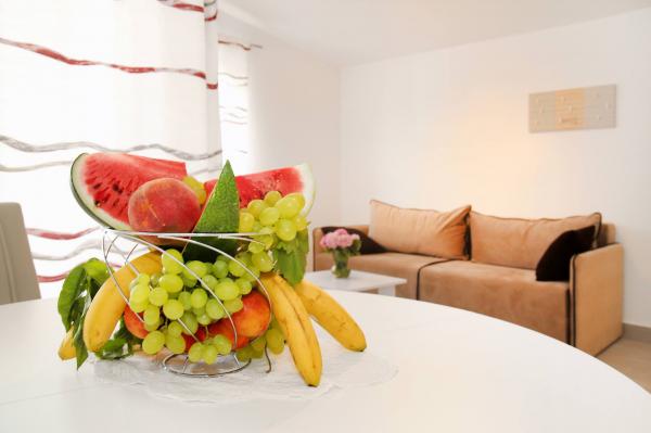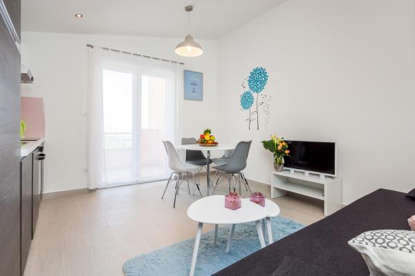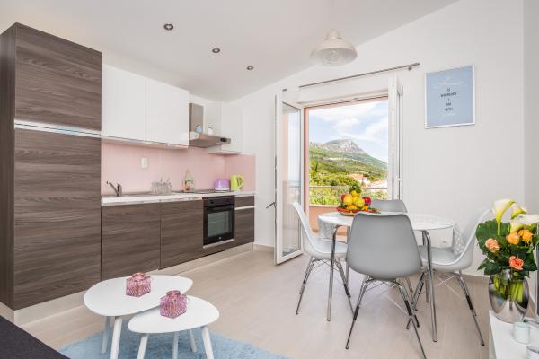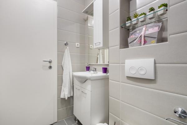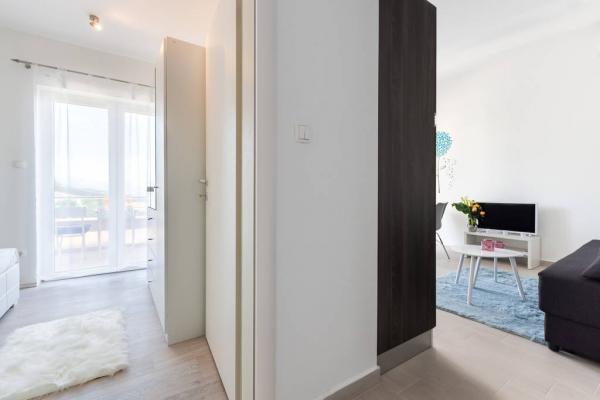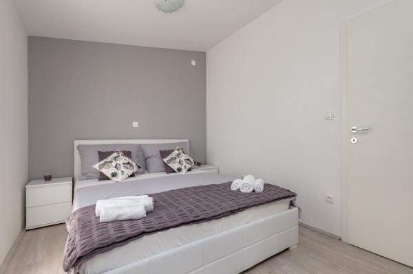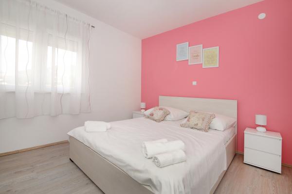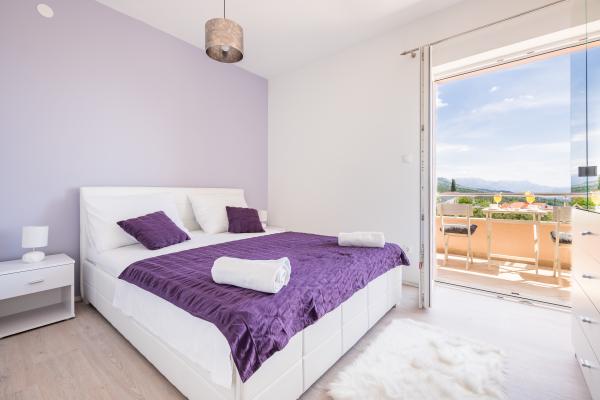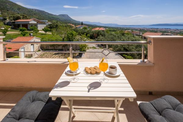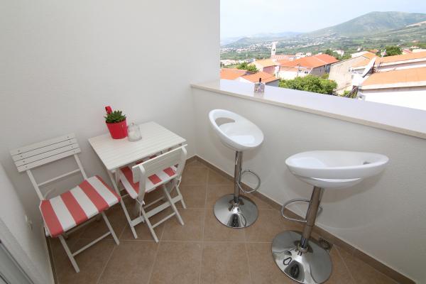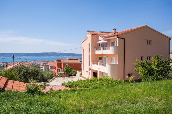 Brand neue Wohnung befindet sich in Kastel Stari zwischen zwei UNESCO-geschützten Stadt Split und Trogir. In der obersten Etage des Hauses (dritten) Etage bietet einen atemberaubenden Panoramablick. Das Interieur ist stilvoll gestaltet und ausgestattet. Das geräumige Wohnzimmer besteht aus einem großen Sofa, eine Küche, ein Flachbild-TV bietet auch einen schönen Panoramablick mit einem großen Balkon. Das Bad ist modern ausgestattet mit allem, was Sie benötigen. Das Schlafzimmer ist geräumig mit einem Kingsize-Bett bequem. Außenansicht des Hauses ist wirklich toll, bietet einen grünen Garten voller Obst, Gemüse und Blumen.