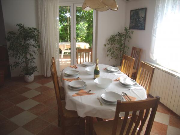 Das Haus der Familie in Kastel Stafilic im Hotel Resnik, biliz Trogir befinden sich gut ausgestattete zwei geräumige Appartements. Apartment 1 (6 2) von 120 m2 besteht aus drei Schlafzimmer, zwei Badezimmer, ein großes Wohn Borak, Küche, Speiseraum und eine große Terrasse mit schönen Grünanlagen in den Garten. Wohnung 2 (4 1) oberflächliche 70 m2 besteht aus zwei Schlafzimmern, Bad, Wohnzimmer mit Küche. Die Wohnung verfügt über eine geräumige Terrasse mit schönen Blick auf Kastela Bucht. Die Wohnungen befinden sich 80 m vom Meer entfernt und in der Nähe gibt es ein Hotelrestaurant und Tennisplätze .. Die Gäste können einen Grill, einen Garten für Kinder und Parkplätze nutzen.