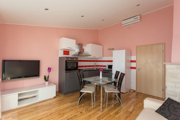 Komplett eingerichtete Wohnung für 5 Personen in einem ruhigen Teil von Kastel Luksic liegt nur 3 Minuten vom Strand und den Restaurants laufen. Die Wohnung befindet sich auf der zweiten Etage und bietet einen Blick auf das Meer. Die Größe ist 65m2, verfügt über zwei Schlafzimmer, Wohnzimmer, Küche, Esszimmer und zwei Terrassen und ein Badezimmer. Das erste Schlafzimmer hat ein großes Doppelbett und ein Einzelbett. Das zweite Schlafzimmer hat ein Doppelbett für zwei Personen. Die Küche ist mit allen notwendigen Utensilien und Geräten komplett ausgestattet (Mikrowelle, elektrischer Wasserkocher, Handmixer, Kaffeemaschine.).