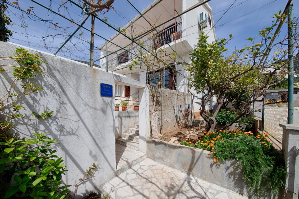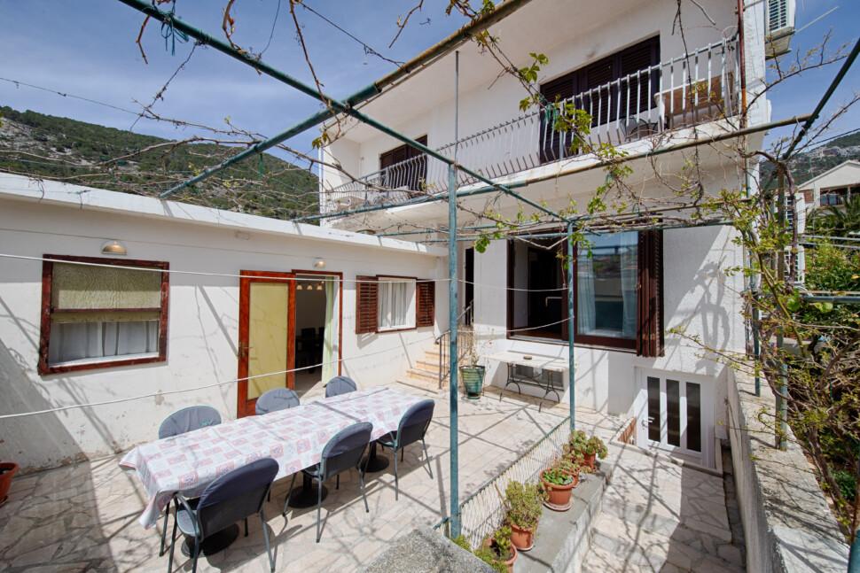 Das Haus liegt in unmittelbarer Nähe des Hotels und nur wenige Schritte vom Strand von Gusarica entfernt. Im Erdgeschoss des Hauses gibt es ein Badezimmer und ein großes, klimatisiertes Wohnzimmer mit zwei Sofas für die Unterbringung von zwei weiteren Personen. Im ersten Stock befinden sich drei klimatisierte Schlafzimmer, von denen zwei Zugang zu einem Balkon und Blick auf das Meer, Komiža und die Insel Biševo haben. Auf der gleichen Etage befindet sich auch ein weiteres Badezimmer, das mit einer Waschmaschine ausgestattet ist. Das Wohnzimmer öffnet sich zu einer 30 m2 großen Sommerterrasse und einer komplett renovierten Küche.
