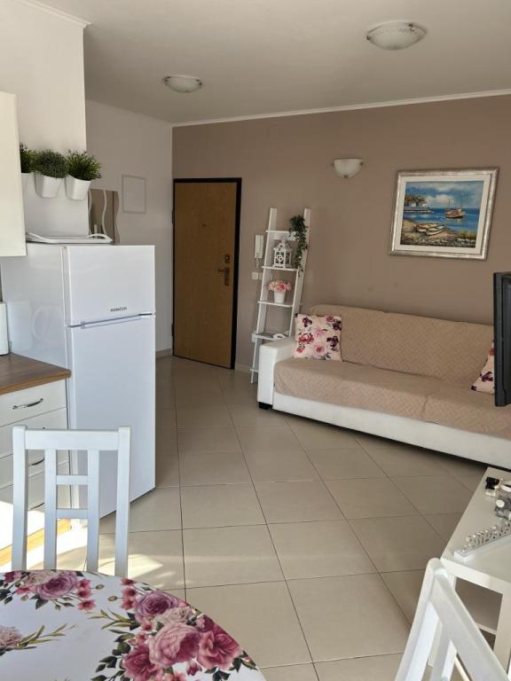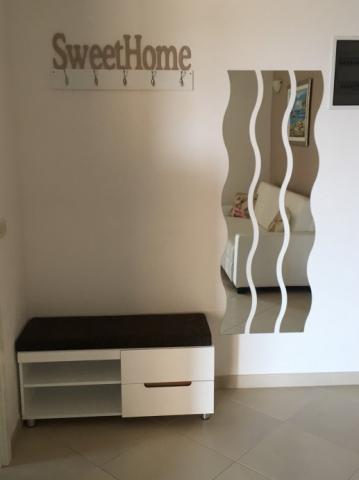 Modernes Apartment in einem ruhigen Wohnhaus im dritten Stock mit wunderschönem Meerblick. Das Apartment verfügt über ein Schlafzimmer mit Doppelbett, eine Couch mit Ausziehsofa, eine voll ausgestattete Küche und eine Terrasse mit wunderschönem Meerblick. Das Apartment ist 50 m vom Meer und Strand entfernt.