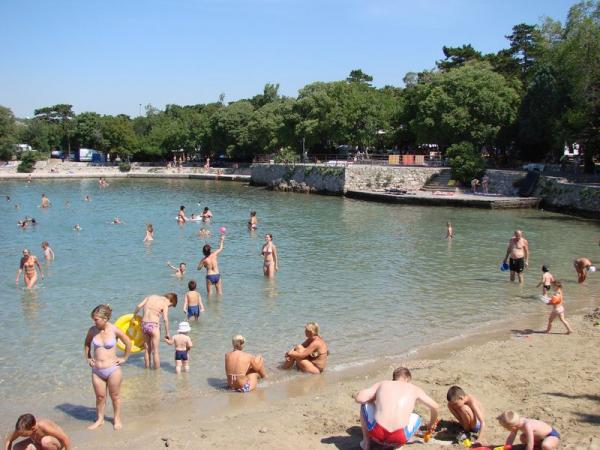 Kurtaxe ist im Preis inbegriffen.Am naechsten ist der Strand in der Bucht Črišnjeva, in der auch einige Liegeplätze für Boote vorhanden sind, ca. 2500 m von uns entfernt. Weiterhin stehen Ihnen zum Baden die Strände in der Bucht Scott zur Verfügung, für Familien mit Kindern empfehlen wir jedoch den Sandstrand auf der Halbinsel Oštro wo es dank des natürlichen Wäldchens auch genügend schattigen Platz für Kleinkinder gibt und man sich daher auch an sehr heissen Tagen den ganzen Tag über dort aufhalten kann. Dort stehen Ihnen Tretboote und Kanus zur Verfügung, es gibt einen Verleih für Strandliegen sowie ein Beachvolleyballfeld. Für die Versorgung während eines Tages am Strand gibt es einen kleinen Laden, eine kleine Bäckerei, Eisdiele und drei Restaurants.