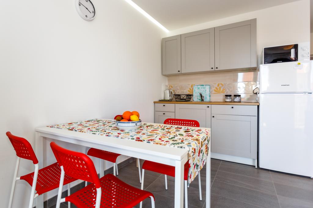 Gruß! :) Dies ist unser brandneues Apartment in der Nähe des Zentrums von Krk (ca. 5 Gehminuten). Die Wohnung verfügt über ein Schlafzimmer mit einem Doppelbett, ein Wohnzimmer mit einem Sofa, das in ein Doppelbett umgewandelt werden kann, eine Küche und ein Badezimmer mit den notwendigen Accessoires. Es verfügt außerdem über einen Balkon, auf dem Sie zu jeder Tageszeit die Sonne genießen können. Wir bieten kostenlose Parkplätze im Schatten, kostenlose Klimaanlage, Smart-TV mit Netflix, BBQ-Grill im Garten neben der Wohnung und kostenloses WLAN.