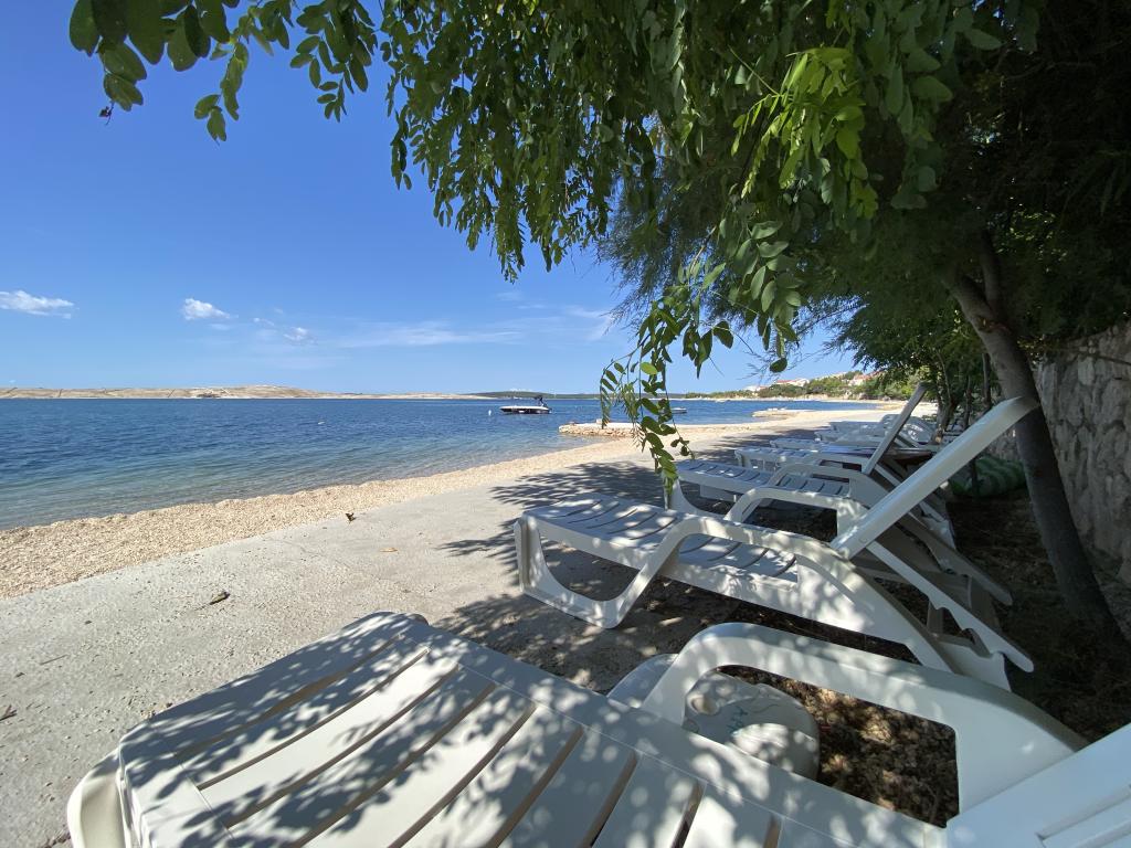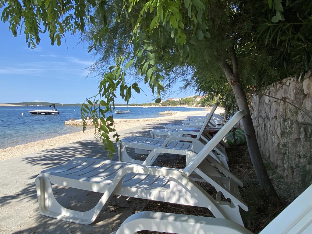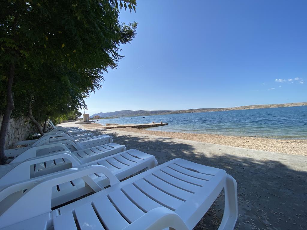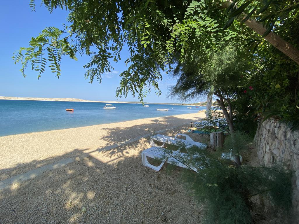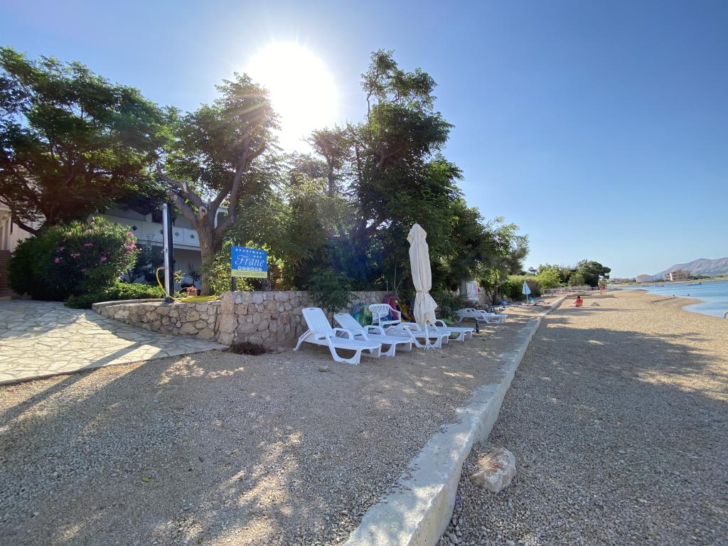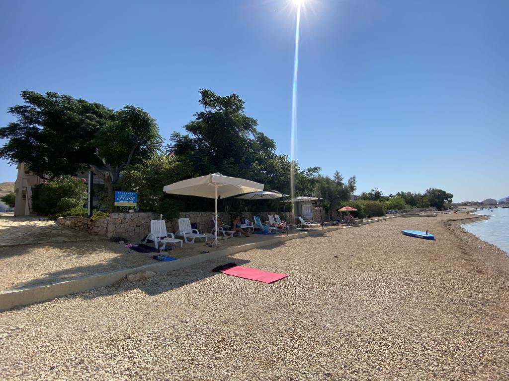 Die Apartments Frane befinden sich im kleinen Dorf Vidalići auf der Insel Pag, direkt am Meer. Die Apartments liegen ideal, nur wenige Schritte von unserem Sandstrand entfernt, der sich nur 10 Meter vor dem Haus befindet. Oberhalb des Strandes gibt es natürlichen Schatten, wie Sie auf den Bildern sehen können. Die Apartments eignen sich für einen Familienurlaub und der Strand sowie der Garten mit Grill sind nur wenige Schritte entfernt.