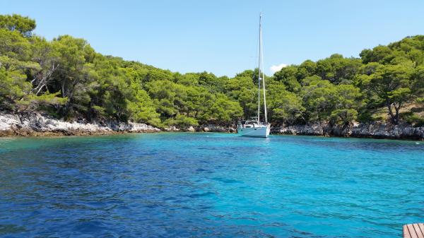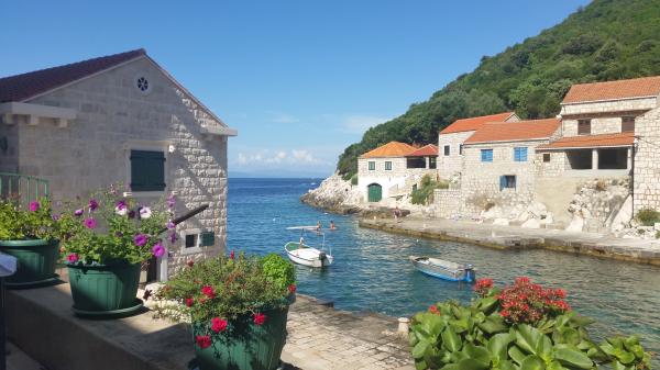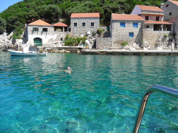 Apartments Simic liegt in einem ruhigen, attraktiven Bucht Hafen 10 Meter vom Meer entfernt. Hinter der Wohnung 2 plus 1 ist eine Terrasse im Garten und ein separater Ausgang auf die Treppe zum Meer. Bei 5 Meter vom Meer entfernt ist eine große Terrasse, für beide Wohnungen. Es ist mit Liegestühlen, Tischen und Stühlen, Sonnenschirmen und Außendusche ausgestattet. Es gibt auch einen Außengrill, Anlegeplatz und gemeinsamen Parkplatz 15 Meter vom Haus entfernt.