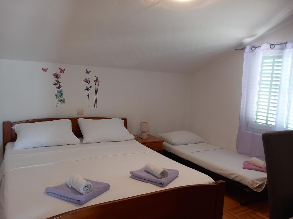 Die Apartments Mira befinden sich in einem Familienhaus und bieten Unterkunft für bis zu 15 Personen in 3 Apartments. Wir befinden uns in einer ruhigen Gegend, fast am Ende einer Sackgasse, und alle wichtigen Annehmlichkeiten (Geschäft, Bäckerei, Geldautomaten, Apotheke, Restaurants, Post, Cafés...) sind innerhalb von 10 Minuten zu Fuß erreichbar . Wir haben kostenlose Parkplätze in der Nähe des Hauses und 2 Kinderspielplätze. Die Wohnungen verfügen über eine Waschmaschine und einen Abstellraum im Erdgeschoss (für Kinderwagen oder Fahrräder). Alle Apartments verfügen über Smart-TVs mit unbegrenztem Netflix :)