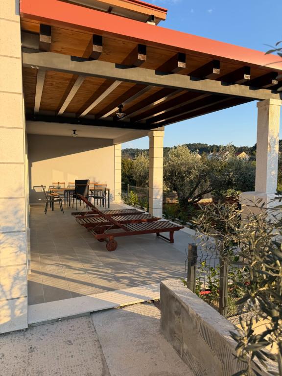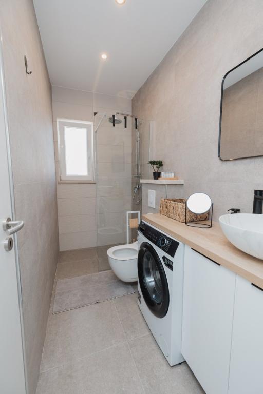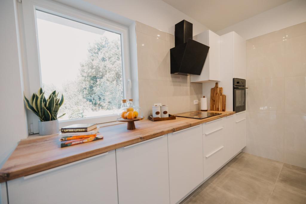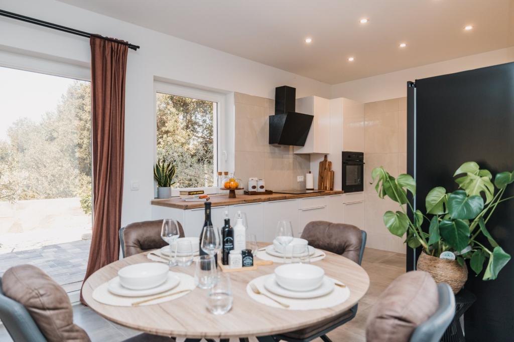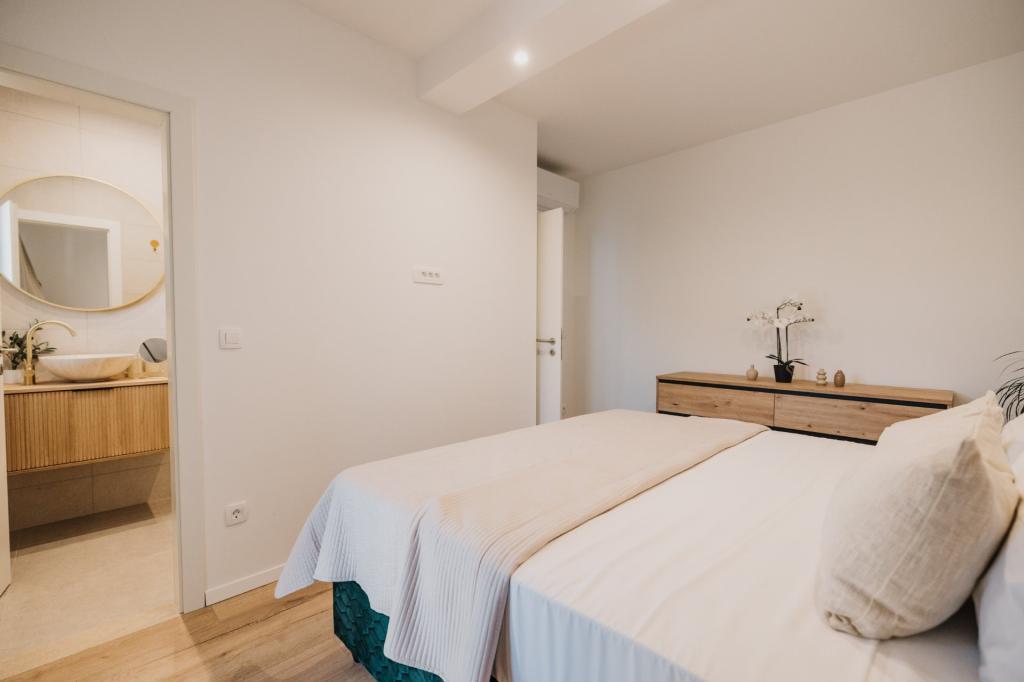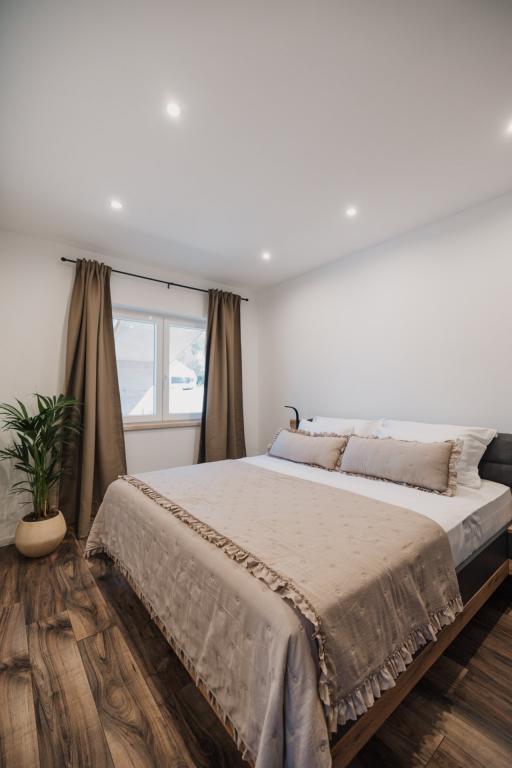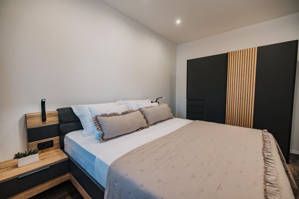In Lumbarda auf der Insel Korčula steht eine frisch renovierte und modern ausgestattete Ferienwohnung zur Vermietung. Sie liegt inmitten eines weitläufigen Olivenhains und bietet Gästen absolute Ruhe und Privatsphäre. Die 75 Quadratmeter große Wohnung verfügt über zwei Schlafzimmer und zwei Badezimmer. Besonders hervorzuheben ist der Außenbereich mit einer 35 Quadratmeter großen Terrasse und einem 100 Quadratmeter großen Garten – ideal zum Entspannen und Genießen der Ruhe. Die Wohnung ist komplett für einen komfortablen Aufenthalt von vier Personen ausgestattet, unter anderem mit Geschirrspüler in der Küche, Waschmaschine im Badezimmer, MaxTV und schnellem 5G-Internet. Für Familien mit kleinen Kindern stellt das Apartment auf Anfrage ein Kinderbett zur Verfügung. Die Lage bietet die perfekte Kombination aus Privatsphäre und der Nähe zu allen Annehmlichkeiten: Die erste Badebucht ist nur 200 Meter entfernt, das Stadtzentrum 800 Meter und die berühmten, weitläufigen Sandstrände erreichen Sie nach etwa 2 Kilometern. Gästen steht ein privater Parkplatz im Gebäude zur Verfügung.