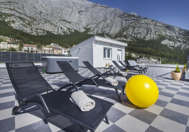Big Hill Apartments and Studio befinden sich im westlichen Teil von Makarska, in der Gespanschaft Split - Dalmatien. Die Apartments befinden sich in einem ruhigen Teil der Vororte von Veliko Brdo neben der Kirche St. Jerolima. Das Anwesen ist umgeben von jahrhundertealten Olivenhainen und Lavendelbüschen! Alle Wohneinheiten haben einen schönen Blick auf das Meer und die Inseln, und oben im Haus befindet sich ein Wellnessbereich mit Whirlpool und Liegestühlen, der allen Gästen zur Verfügung steht. Die Aussicht von der Terrasse ist spektakulär und macht alle unsere Gäste sprachlos, vor dem Blick auf das Meer und die Inseln, und im Hintergrund die Berge Biokovo. Wir haben zwei Restaurants in der Nähe, einen großen Supermarkt. !! Der nächste Strand ist 2 km entfernt und das Stadtzentrum 3,5 km! Alle Wohneinheiten sind modern eingerichtet und ausgestattet mit Klimaanlage, kostenlosem Internet im gesamten Gebäude, Parkplatz vor dem Gebäude.