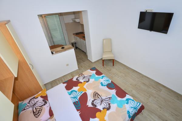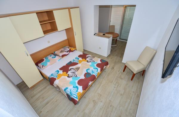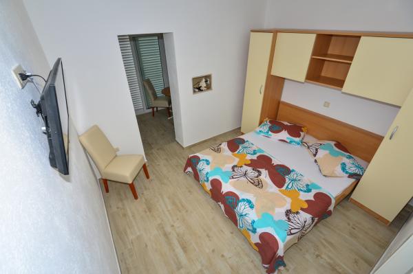 Apartments Dina ist nur eine Minute zu Fuß zum Strand, in einer ruhigen Straße, kein Lärm. Die Stadt nimmt Zentrum weniger als 5 Minuten zu Fuß, und in der Nähe ist alles, was Sie brauchen, Geschäfte, Restaurants, Diskotheken, Strand ...