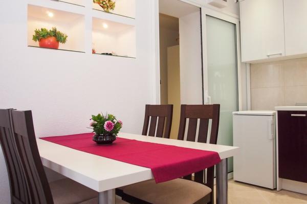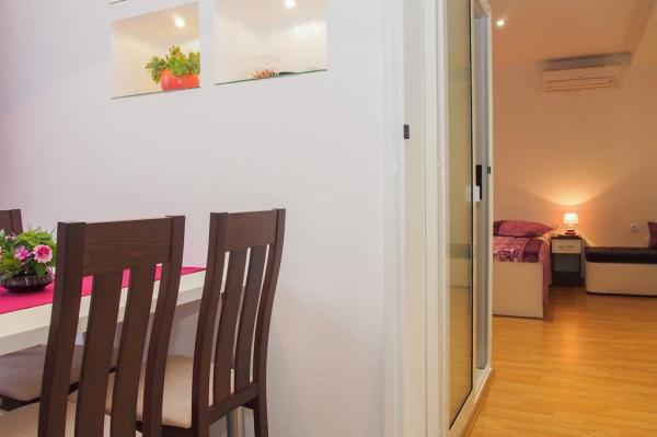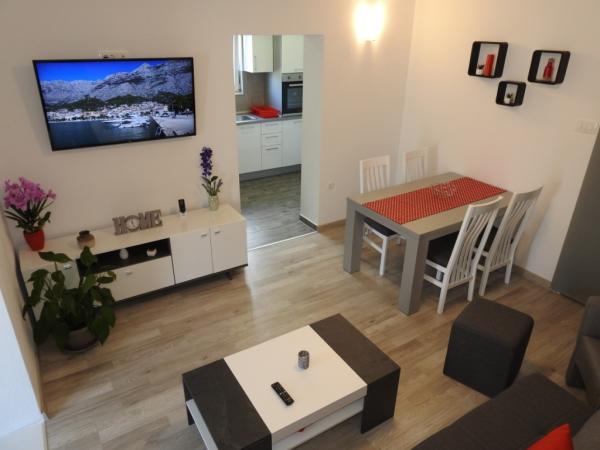 Die Apartments befinden sich in einem ruhigen Teil von Makarska, 300 m vom Zentrum entfernt. Es verfügt über eine Terrasse, Parkplatz, Klimaanlage und TV. Es gibt auch einen Außengrill. Bettwäsche, Handtücher und Endreinigung sind im Preis inbegriffen.