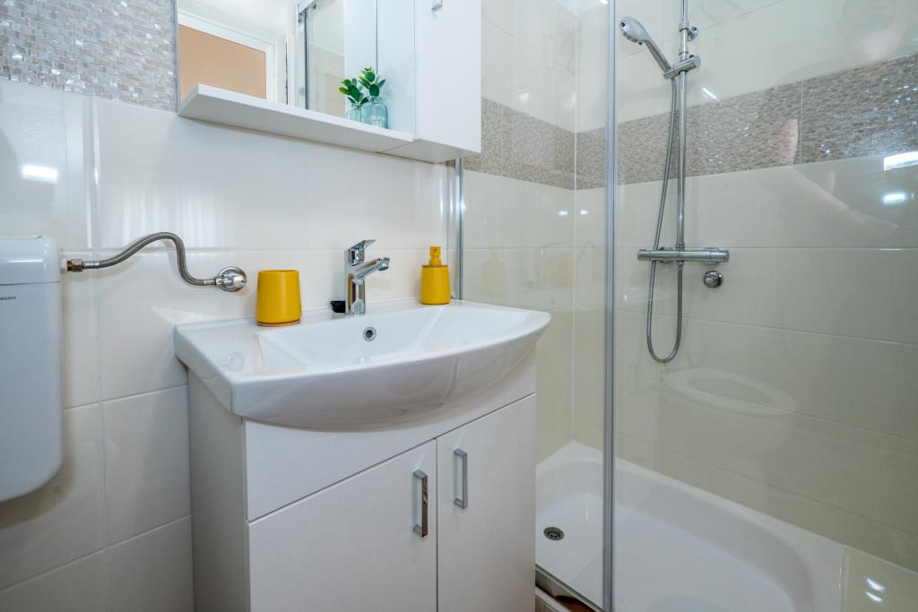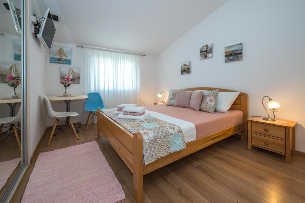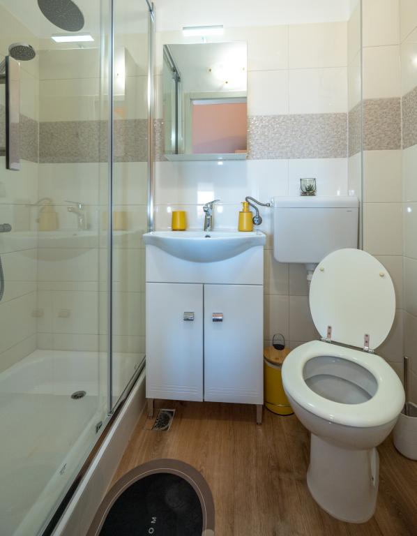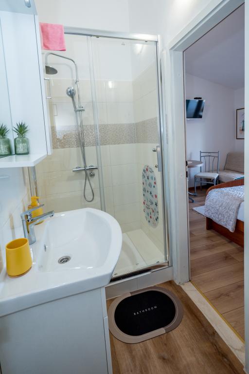 Die Zimmer sind sauber, modern und gut ausgestattet und befinden sich im zweiten Stock eines Einfamilienhauses. Vor dem Haus liegt ein Hof mit Parkplätzen für die Gäste. Das Haus selbst befindet sich in einem schönen, sehr touristischen Viertel von Makarska, etwa 90 m vom Stadtstrand entfernt. Im Umkreis von 200 m befinden sich acht Hotels. Der Gastgeber verfügt über langjährige Erfahrung in der Tourismusbranche. 500 m vom Haus entfernt finden Sie ein Tenniszentrum und einen Wasserpark, 800 m den Stadtpark mit Sport- und Freizeiteinrichtungen und 1000 m den Beginn des Stadtzentrums. 100 m entfernt befindet sich eine Tauchschule und in derselben Entfernung das Hotel Biokovka mit Hallenbad, Saunen, Fitnessraum, Physiotherapie und Massagen. Zu den nahegelegenen Attraktionen zählen das Muschelmuseum in der Stadt, der Naturpark Biokovo mit dem berühmten Skywalk, die Roten und Blauen Seen in Imotski sowie Bootsausflüge zur Insel und in die Stadt Korčula und zum berühmten Strand Zlatni rat auf der Insel Brač.