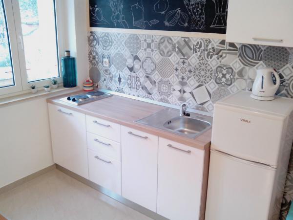 Die Wohnung ist bescheiden, bietet aber alles, was man im Urlaub braucht. Es gibt sogar ein Bügeleisen, sehr zur Freude meines Mannes, haha. Man kann problemlos in der Wohnung kochen und Wäsche mit der Hand waschen (vor dem Fenster hängen Wäscheleinen). Die Nachbarschaft ist ruhig und friedlich, mit Blick auf zwei wunderschöne Bäume: einen Feigenbaum und einen Olivenbaum, und den Berg dahinter. Kruno, unser Gastgeber, ist sehr freundlich und hilfsbereit. Er begrüßte uns mit einem Lächeln und verabschiedete sich mit demselben Lächeln. Vielen Dank, Kruno, für einen wundervollen Aufenthalt!