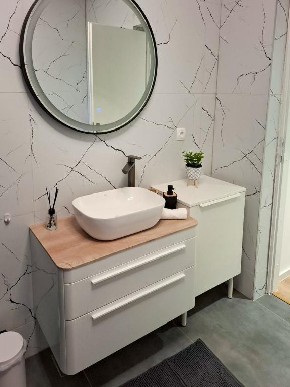 Das Apartman Marta 1 Makarska liegt in Makarska, 36 km vom Blauen See und nur 6 Gehminuten vom Franziskanerkloster Makarska entfernt. Es bietet einen Garten mit Gartenblick. Die klimatisierte Unterkunft befindet sich 12 Gehminuten vom Strand Deep Port entfernt. WLAN und Privatparkplätze stehen Ihnen kostenfrei zur Verfügung. Das Apartment verfügt über einen Balkon mit Bergblick, 2 Schlafzimmer, ein Wohnzimmer, einen Flachbild-TV, eine voll ausgestattete Küche mit Kühlschrank und Geschirrspüler sowie 2 Badezimmer mit Dusche. Handtücher und Bettwäsche werden gestellt.