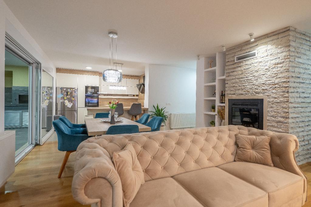 Die Penthäuser Jure und Nikola in Makarska sind luxuriöse und geräumige Apartments mit 135 m² Wohnfläche, ideal für einen komfortablen und erholsamen Aufenthalt. Jedes Apartment verfügt über drei elegant eingerichtete Schlafzimmer, zwei modern ausgestattete Badezimmer, eine Garage und eine große Terrasse mit spektakulärem Blick auf das Meer und die Stadt – perfekt zum Entspannen und Genießen. In ruhiger Lage, 2 km vom Stadtzentrum und 1 km vom Meer entfernt, bieten sie die ideale Kombination aus Privatsphäre und der Nähe zu allen Annehmlichkeiten.