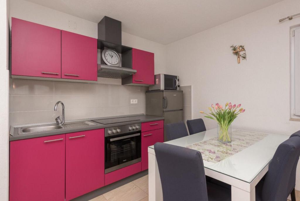 Einfamilienhaus in einer ruhigen Gegend von Makarska. Das Haus liegt 10 Gehminuten vom Strand entfernt. Neu eingerichtetes Haus mit fünf Wohnungen. Alle Apartments sind klimatisiert und verfügen über kostenfreies WLAN. Parkplätze sind vorhanden. Möglichkeit zum Grillen. In unmittelbarer Nähe befinden sich: 2 Kaffeebars, Apotheke, 2 Supermärkte, Tourismusbüro, Buchmacher, Geldautomat. Lassen Sie uns Ihren Urlaub in Makarska schöner machen. Die Familie Roso