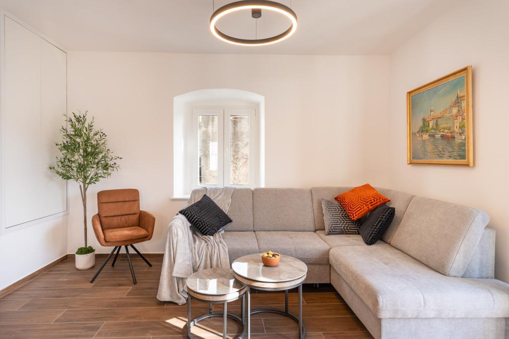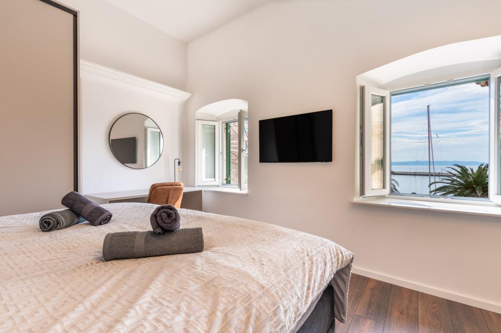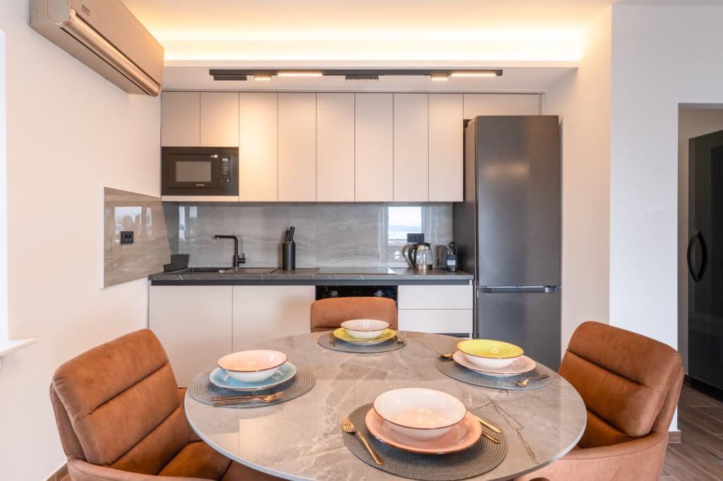 Das Apartment Azzuro liegt mitten in Makarska, direkt am Wasser, und bietet moderne und geräumige Unterkünfte mit Meerblick. Es verfügt über ein Schlafzimmer, ein Badezimmer, eine voll ausgestattete Küche und ein gemütliches Wohnzimmer mit einem kleinen Balkon zum Meer. Dank der hervorragenden Lage sind alle Annehmlichkeiten wie Strände, Restaurants, Cafés und Geschäfte bequem zu Fuß erreichbar. Eine ideale Wahl für Gäste, die mitten im Geschehen sein und die lebendige Atmosphäre von Makarska genießen möchten – mit garantierter Unterstützung durch das Personal während ihres Aufenthalts.