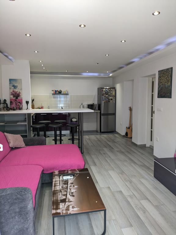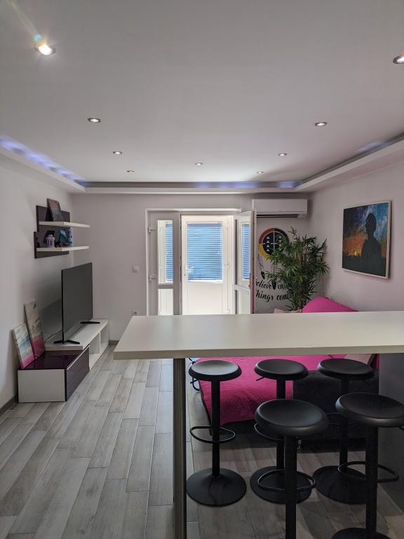 Willkommen in unserem modernen, frisch renovierten und zentral gelegenen Apartment im Herzen von Makarska, in der ältesten Straße Kalalarga, direkt am Hauptplatz. Das Apartment verfügt über zwei Schlafzimmer, zwei Badezimmer, zwei Klimaanlagen, einen 160-cm-Fernseher, Netflix, einen Geschirrspüler, eine Waschmaschine, eine voll ausgestattete Küche und einen Wohnbereich mit großen Fenstern. Es befindet sich im Erdgeschoss und hat zwei separate Eingänge. Absolute Privatsphäre ist garantiert.