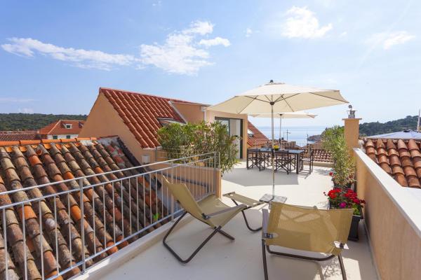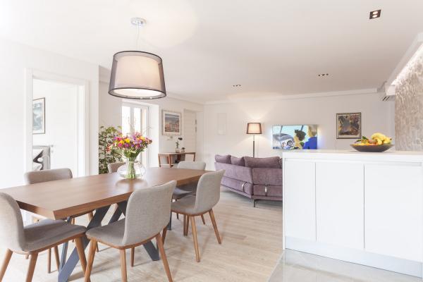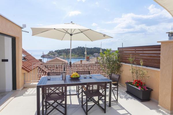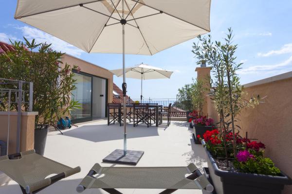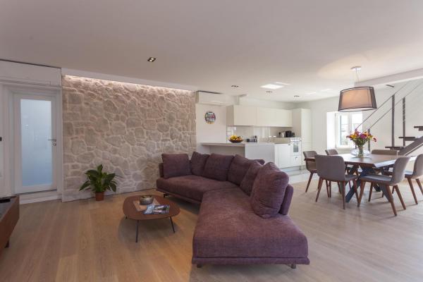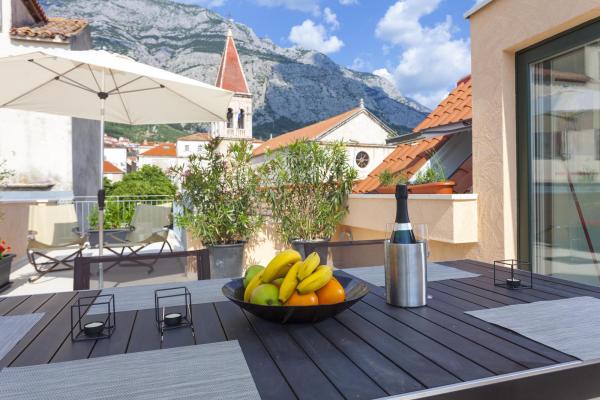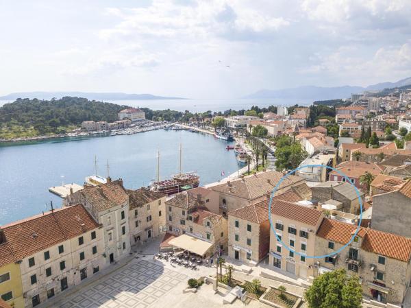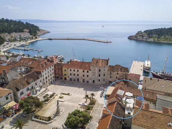 Neue, moderne und luxuriös eingerichtete Maisonette-Wohnung im Zentrum von Makarska. Es befindet sich am Hauptplatz der Stadt, nur 50 m von der Uferpromenade der Stadt, den besten Restaurants der Stadt, Weinbars und der Kathedrale St. Mark. Die Wohnung hat eine schöne Terrasse mit Blick auf den Stadthafen. Die Wohnung ist voll klimatisiert, WLAN ist in allen Zimmern verfügbar und jedes Zimmer sowie Wohnzimmer ist mit einem LCD-TV ausgestattet. Die Küche ist komplett mit allen Geräten wie Geschirrspüler, Mikrowelle, Backofen, Kaffeemaschine usw. ausgestattet. Zwei Badezimmer stehen mit Handtüchern und Toilettenartikeln zur Verfügung. Privater Parkplatz ist ca. 100 m von der Wohnung entfernt und kostet 16 € / Tag.