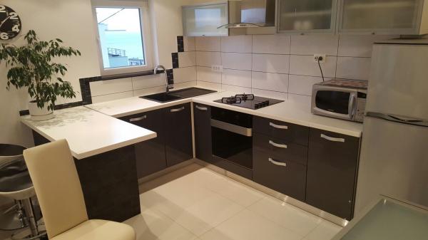 Das moderne und komplett eingerichtete Wohnung befindet sich im attraktivsten Teil von Makarska. Die Anlage befindet sich 5 Minuten zu Fuß zum Strand und der Promenade voll von verschiedenen Einrichtungen, wie Bars, Restaurants, Souvenirläden und so weiter. Im selben Haus, wo die Wohnung ist eine Apotheke und einen Supermarkt. In der Nähe als 10 bis 20 m sind ruhige Cafés, Bäckereien, Arzt, Kinderarzt, ATM, Kiosk und Geschäfte. Die Wohnung besteht aus Küche, Wohnzimmer, drei Schlafzimmer, drei Bäder, große Terrasse und Balkon. Die Wohnung verfügt über einen schönen Blick auf das Meer, Inseln, Stadtzentrum und dem Berghang. Die Wohnung ist mit einer Klimaanlage ausgestattet, die ein bisschen in der Wohnung ist, Geschirrspüler, Waschmaschine, TV Flachbild-TV, WLAN, Mikrowelle. Die Gäste haben Zugang zu Wäsche und Handtücher und andere verhandelbar.