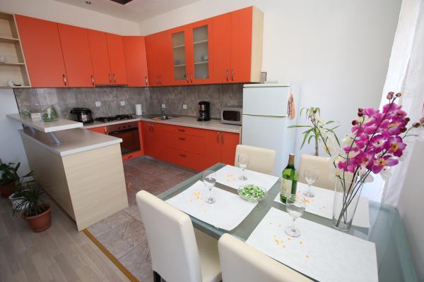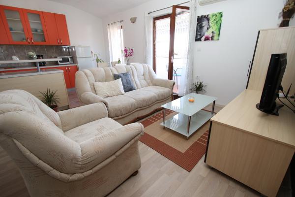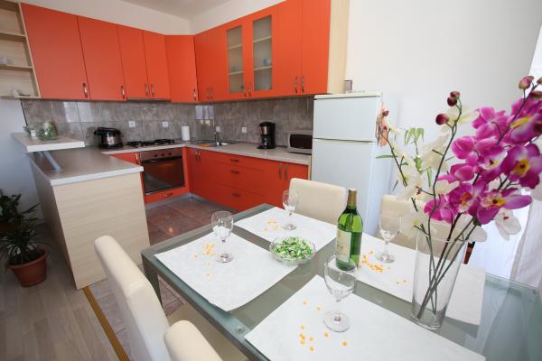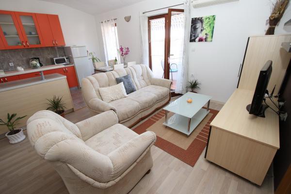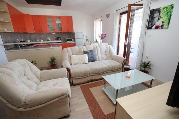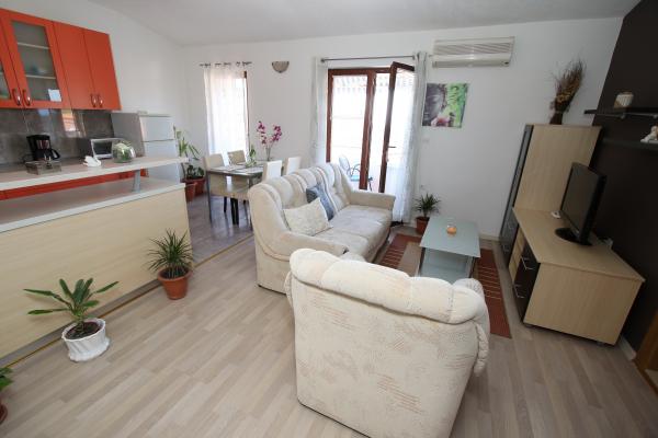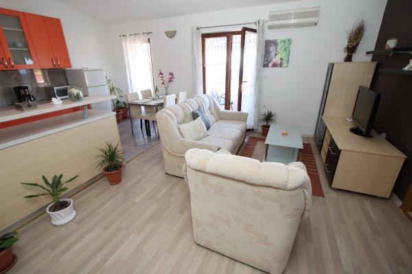 Wohnung ist modern eingerichtet, Parkplatz, Wi-Fi. Es befindet sich 100 Meter vom Hauptplatz in der Nähe von einem Geschäft, Restaurant 80m Ljekarana auch entfernt. Die Anlage ist geeignet für Familien mit Kindern, weil es in einer ruhigen Straße mit Blick auf die Küste befindet.