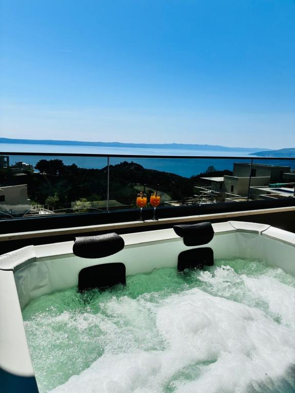 Die Villa 5 in Makarska bietet Unterkünfte mit kostenfreiem WLAN und Meerblick sowie einen Außenpool, einen Garten und eine Gemeinschaftslounge. Kostenfreie Privatparkplätze und eine Gemeinschaftsküche stehen ebenfalls zur Verfügung. Das klimatisierte Apartment verfügt über vier Schlafzimmer, ein Wohnzimmer, eine voll ausgestattete Küche mit Kühlschrank und Kaffeemaschine sowie drei Badezimmer mit Dusche und kostenlosen Pflegeprodukten. Handtücher und Bettwäsche werden gestellt. Die Villa 5 bietet 4-Sterne-Unterkünfte mit Whirlpool und Terrasse.