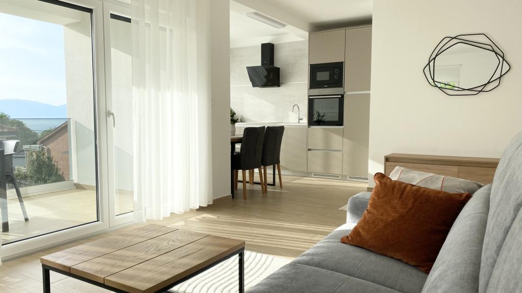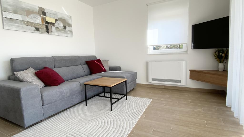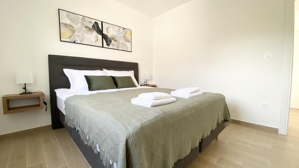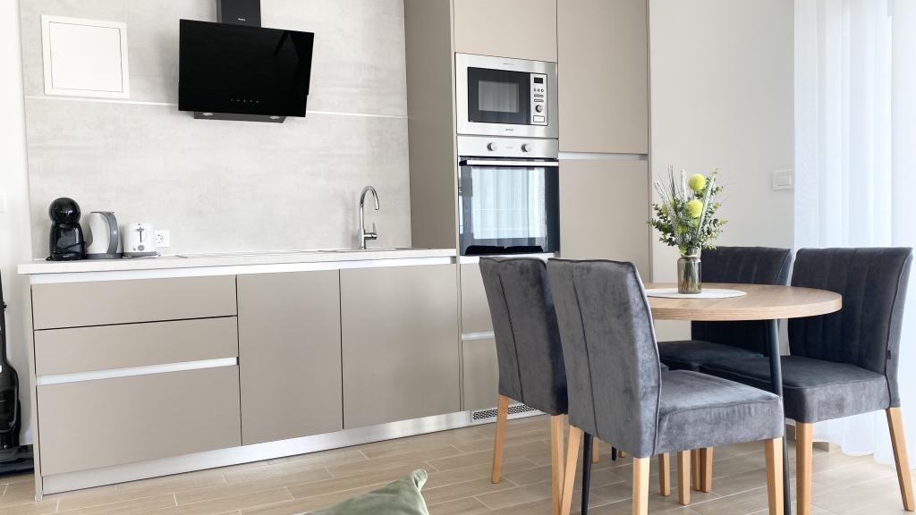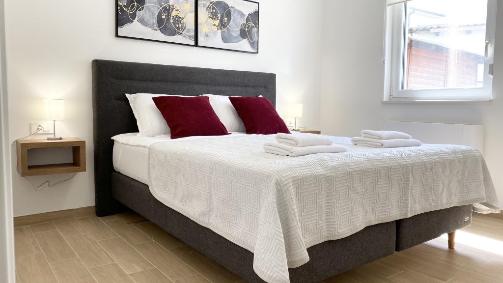Die Villa Malina ist ein Apartmenthaus in ruhiger Lage im Ort. Sie bietet drei modern ausgestattete Apartments mit 50, 55 und 60 m² Wohnfläche, jeweils mit separatem Eingang und sicherem Parkplatz im Hof. Jedes Apartment verfügt über ein Wohnzimmer, ein Schlafzimmer, ein Badezimmer, eine Küche und eine überdachte Terrasse. Im Wohnzimmer befindet sich ein Schlafsofa für zwei Personen. Die Küche ist mit Geschirr, Geschirrtüchern, Backofen, Mikrowelle, Kühlschrank mit Gefrierfach, Wasserkocher, Elektroherd, Toaster und Geschirrspüler ausgestattet. Zur weiteren Ausstattung gehören Internetanschluss, Klimaanlage, Staubsauger, Waschmaschine und Föhn. Ein Babybett ist auf Anfrage kostenlos erhältlich. Bei einem Aufenthalt von 10 Tagen oder länger erhalten Sie 10 % Ermäßigung.