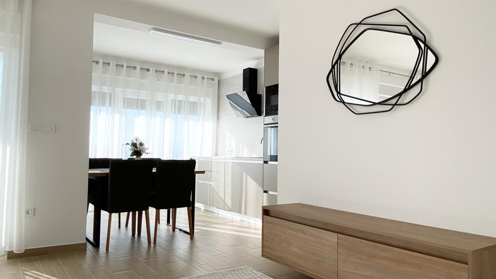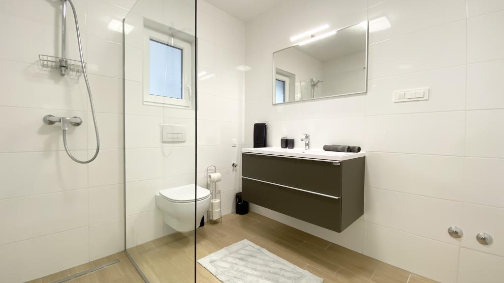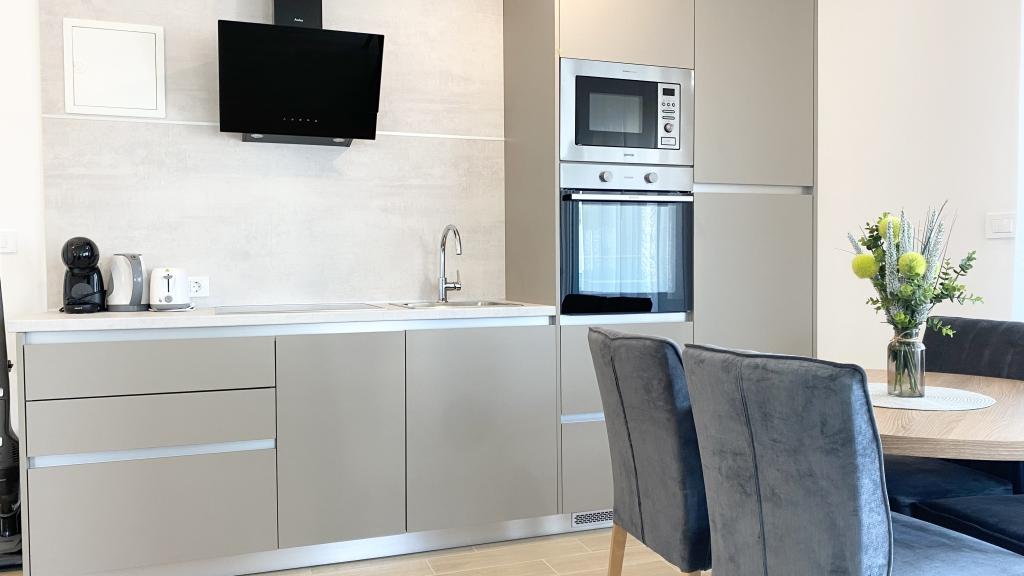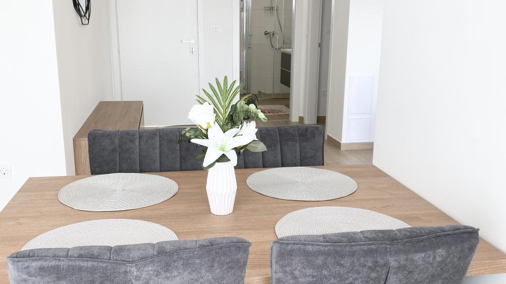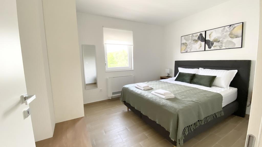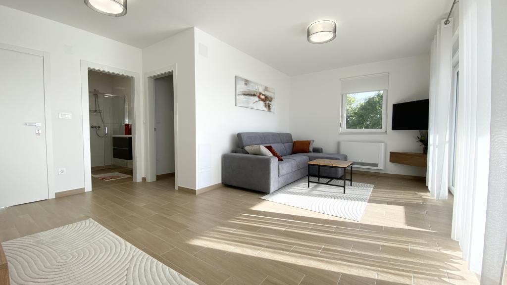 Die Villa Malina ist ein Apartmenthaus in ruhiger Lage im Ort. Sie bietet drei modern ausgestattete Apartments mit 50, 55 und 60 m² Wohnfläche, jeweils mit separatem Eingang und sicherem Parkplatz im Hof. Jedes Apartment verfügt über ein Wohnzimmer, ein Schlafzimmer, ein Badezimmer, eine Küche und eine überdachte Terrasse. Im Wohnzimmer befindet sich ein Schlafsofa für zwei Personen. Die Küche ist mit Geschirr, Geschirrtüchern, Backofen, Mikrowelle, Kühlschrank mit Gefrierfach, Wasserkocher, Elektroherd, Toaster und Geschirrspüler ausgestattet. Zur weiteren Ausstattung gehören Internetanschluss, Klimaanlage, Staubsauger, Waschmaschine und Föhn. Ein Babybett ist auf Anfrage kostenlos erhältlich. Bei einem Aufenthalt von 10 Tagen oder länger erhalten Sie 10 % Ermäßigung.