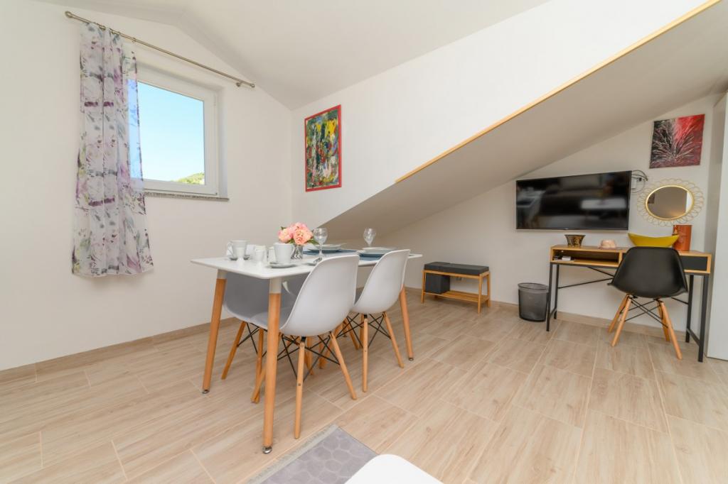 Komplett und modern ausgestattete Ferienwohnungen in einer ruhigen Kleinstadt Miholascica auf der Insel Cres. Die Anlage befindet sich 150m vom Kiesstrand (zal) entfernt, wo es eine kleine Anlage mit Getränken und Speisen gibt.