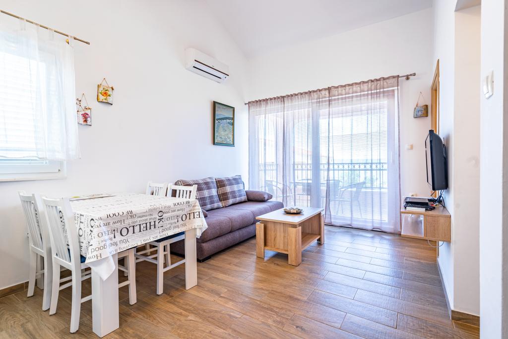Willkommen in unserem schönen Haus zur Miete, gelegen in einer ruhigen und freundlichen Gegend. Diese Wohlfühloase bietet Ihnen alles, was Sie für einen erholsamen und unvergesslichen Urlaub brauchen. Unser Haus liegt nur 5 Gehminuten vom Meer entfernt und bietet Ihnen einfachen Zugang zu wunderschönen Stränden und der kristallklaren Adria. Jedes Apartment verfügt über eine Terrasse mit Blick auf das Meer, die den perfekten Rahmen für einen Morgenkaffee oder ein romantisches Abendessen bei Sonnenuntergang bietet. Unsere Apartments sind modern und zeitgemäß ausgestattet und bieten Ihnen Komfort und Luxus während Ihres Aufenthalts. Genießen Sie großzügige Zimmer, eine voll ausgestattete Küche und eine elegante Inneneinrichtung, die Sie überzeugen wird. Ganz gleich, ob Sie als Paar einen romantischen Kurzurlaub suchen oder als Familie einen erholsamen Urlaub verbringen möchten, unser Haus ist der ideale Ort für Sie. Wir erwarten Ihre Ankunft und freuen uns darauf, Ihnen ein unglaubliches Urlaubserlebnis zu bieten, an das Sie sich noch lange erinnern werden.
