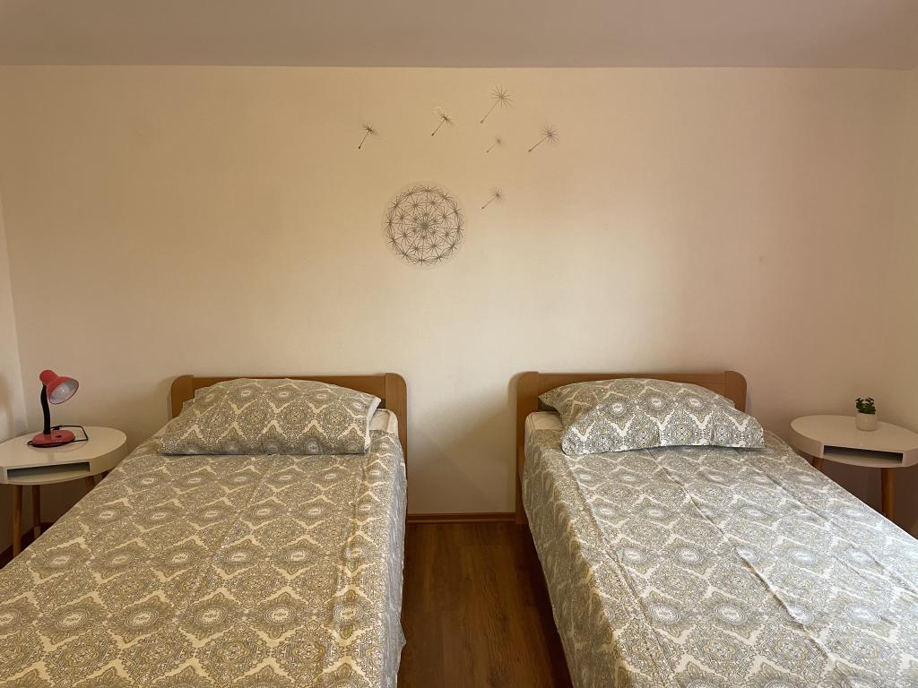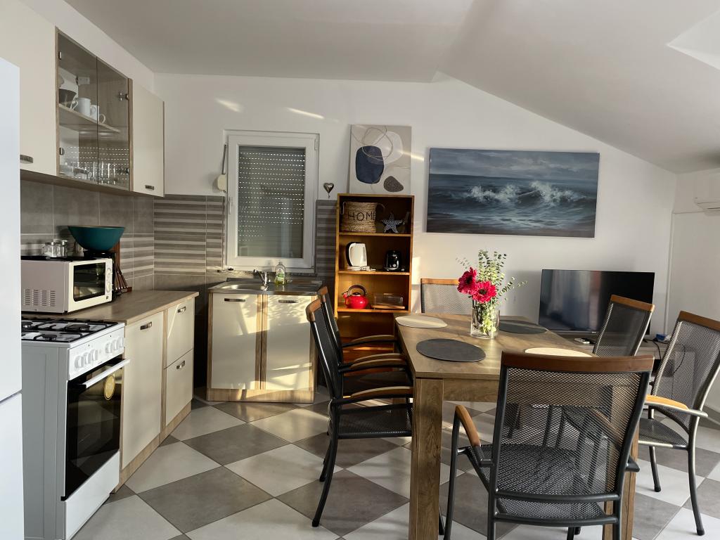 Ferienhaus von 60 m2 plus Terrasse von 31 m2 befindet sich im Zentrum von Maslenica in der Nähe von Zadar auf einem Grundstück von 1.273 m2 bis zum Strand 5 Minuten zu Fuß entfernt, entfernt. Die Eigentümer nicht im Haus wohnen und die Gäste werden im gesamten Gebäude zu bleiben. Das Haus besteht aus zwei Schlafzimmern, Bad, Küche, Wohnzimmer und Flur. Die Terrasse ist mit Sonnenschutz. Bettwäsche und Handtücher werden alle 7 (sieben) Tage für Aufenthalte länger als 7 (sieben) Tage gewechselt. Die Küche ist mit allen notwendigen Geräten ausgestattet und liefert Geschirr und Essen. Das Haus ist mit Bügeleisen und Bügelbrett Waschmaschine, Trockner, Fön, Kaffeemaschine und Wasserkocher ausgestattet. Mit dem Internet, Klimaanlage, Sat-TV, Parkplatz, Haartrockner und Waschmaschinen sind nicht naplaćuje.Kuća liegt in einer ruhigen Gegend Maslenice mit Olivenbäumen und anderen Bäumen rund um das Gebäude. Herzlich Willkommen!