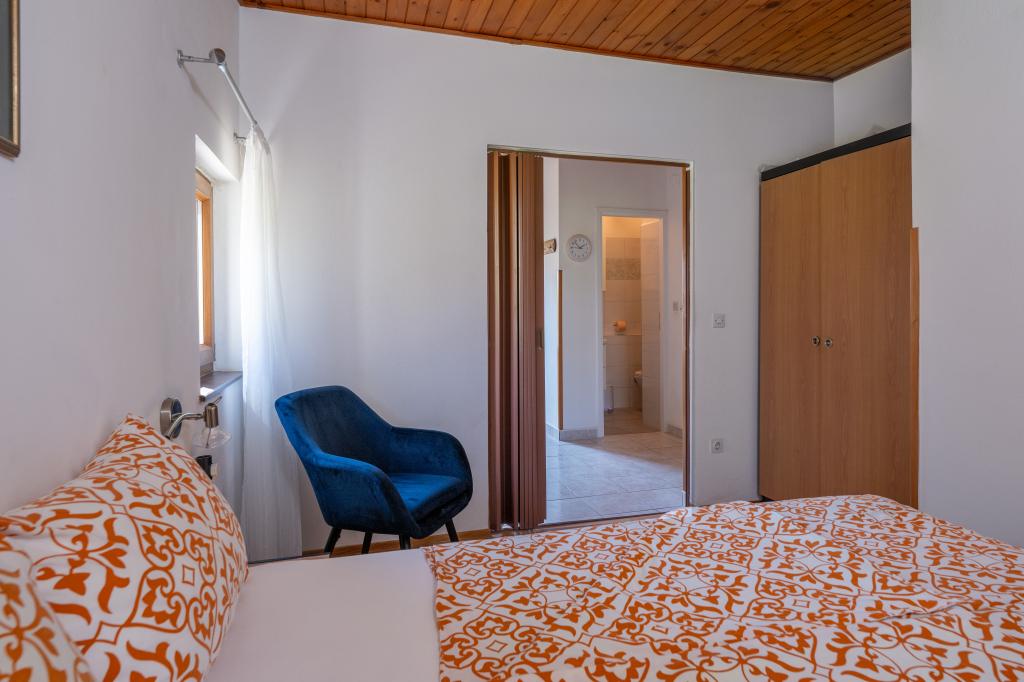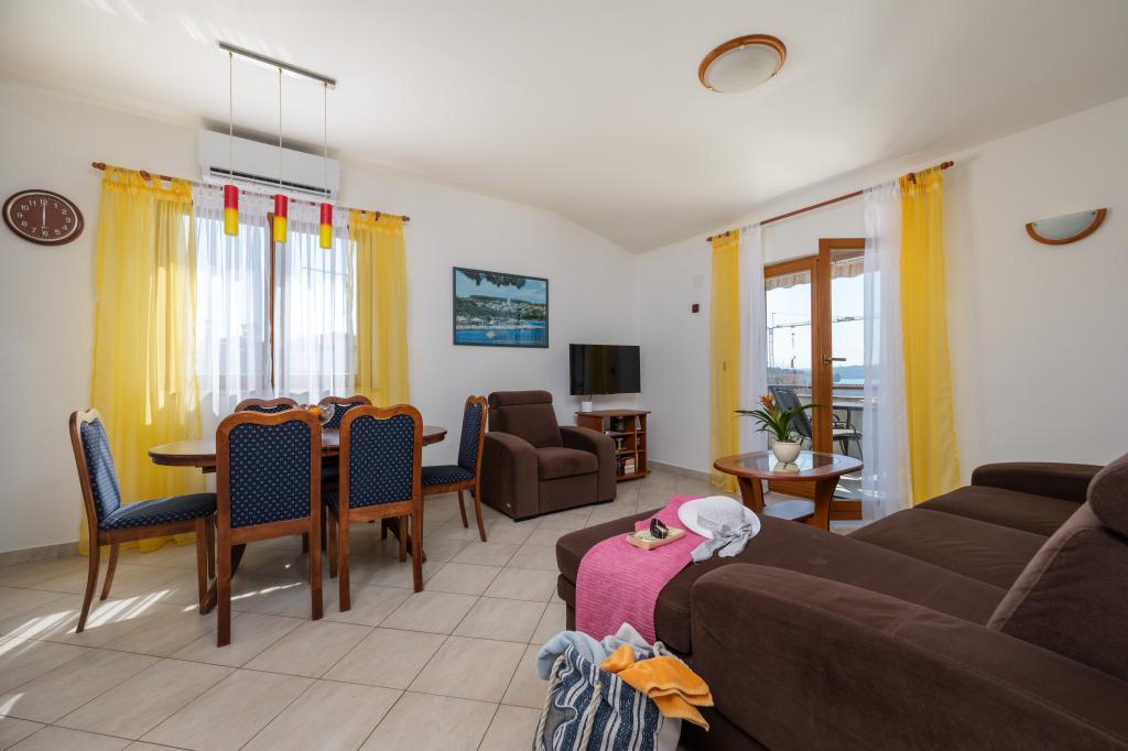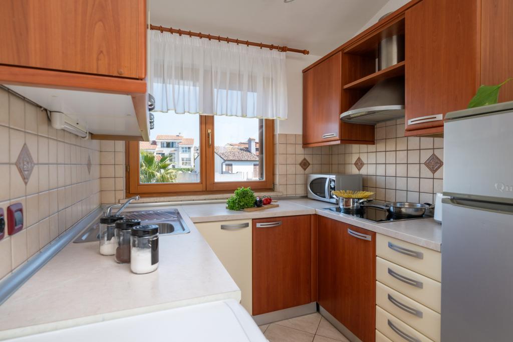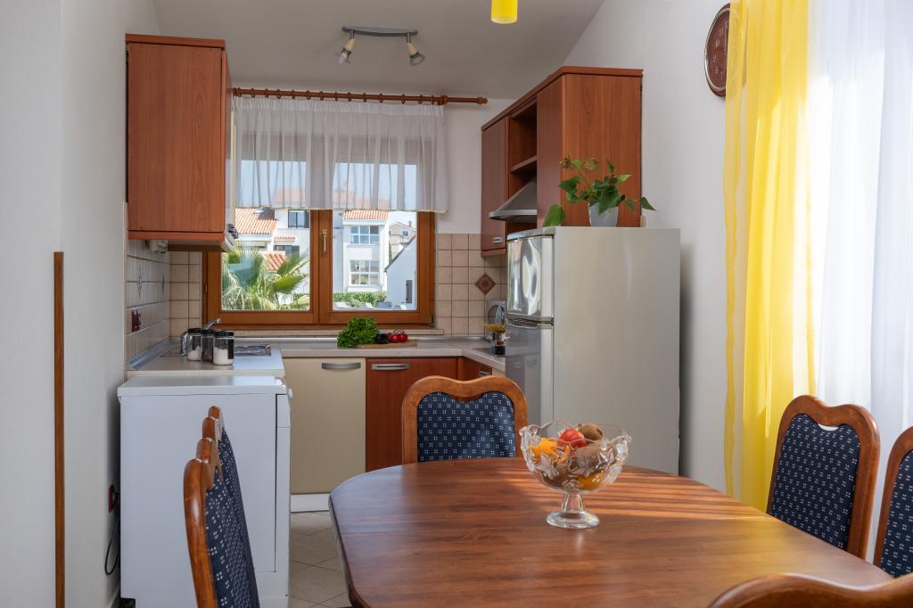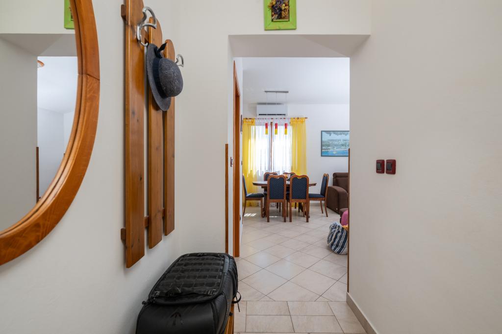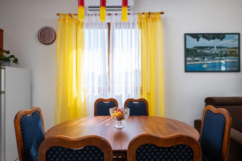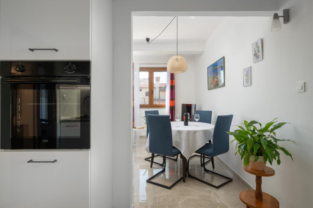 Das Haus liegt in einem ruhigen Teil von Medulin, 250–300 m vom Strand entfernt, mit einem großen Garten und privatem Parkplatz. Es stehen vier komplett und modern ausgestattete Apartments zur Miete bereit. Zwei Apartments befinden sich im Erdgeschoss: Apartment Nr. 1 mit zwei Schlafzimmern, Küche, Wohnzimmer, Bad und Terrasse; Apartment Nr. 2 mit einem Schlafzimmer, Küche, Bad und Gartenterrasse. Im zweiten Stock befindet sich Apartment Nr. 3 mit zwei Schlafzimmern, Küche, Wohnzimmer, Bad und Balkon; Apartment Nr. 4 mit einem Schlafzimmer, Küche, Wohnzimmer, Bad und Balkon. Alle Apartments verfügen über Klimaanlage, WLAN und Sat-TV. Bettwäsche, Handtücher, Kurtaxe und Registrierung sind im Preis inbegriffen. Jedes Apartment hat einen eigenen Parkplatz, einen Garten und einen tragbaren Grill. Waschmaschinenmiete: 5 Euro, Zustellbett: 10 Euro. Parkplatz und Hof sind videoüberwacht.