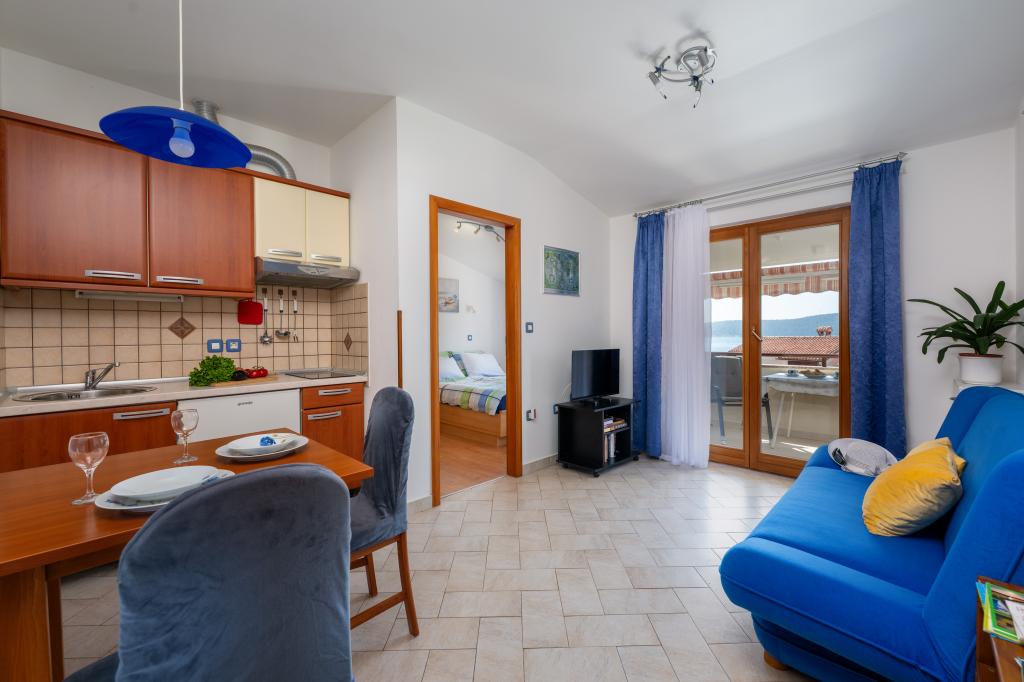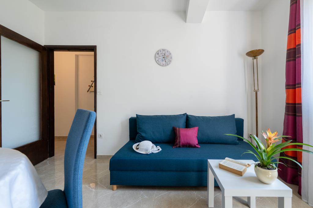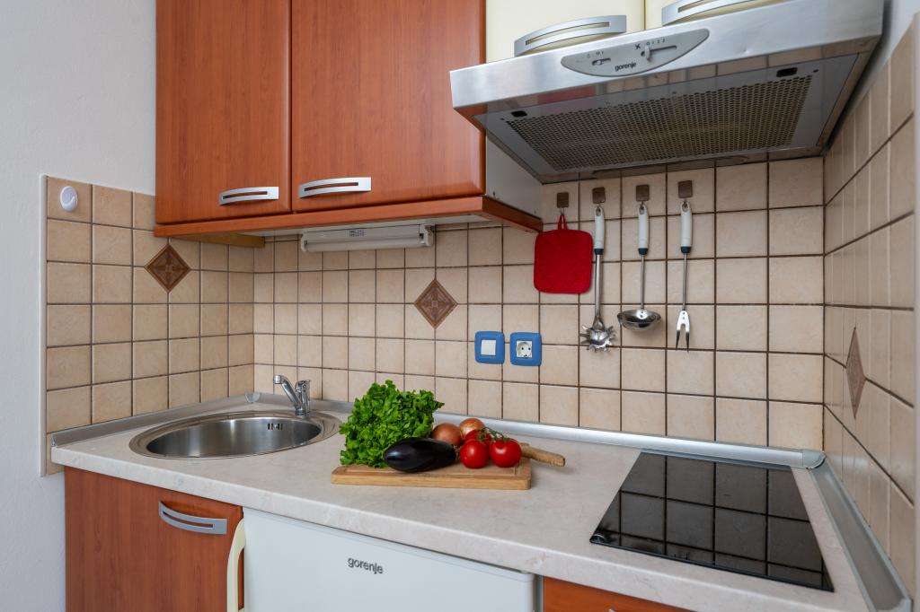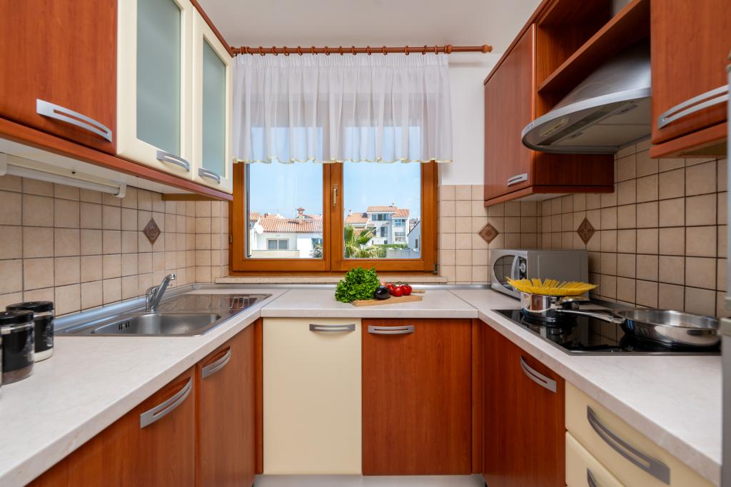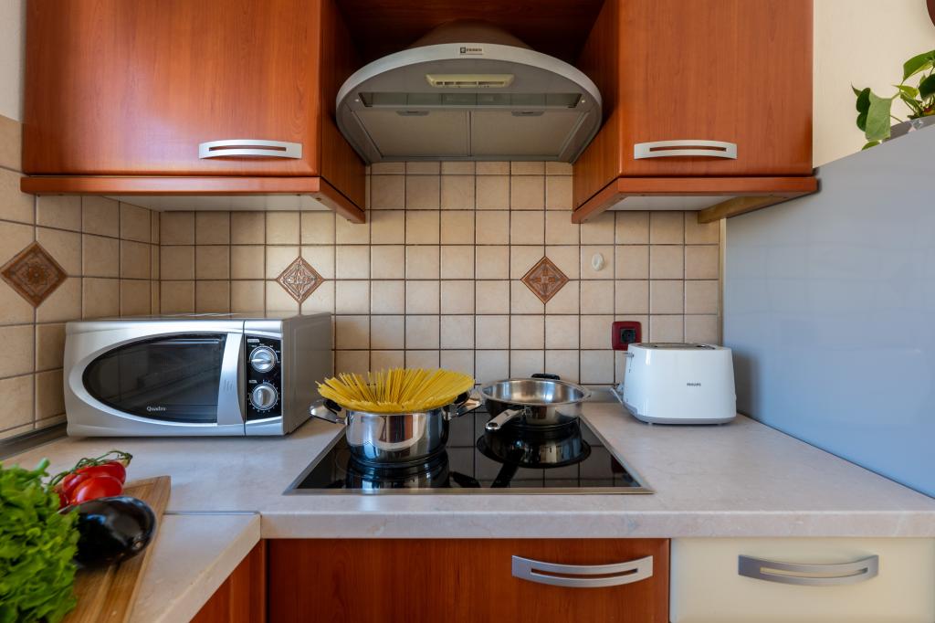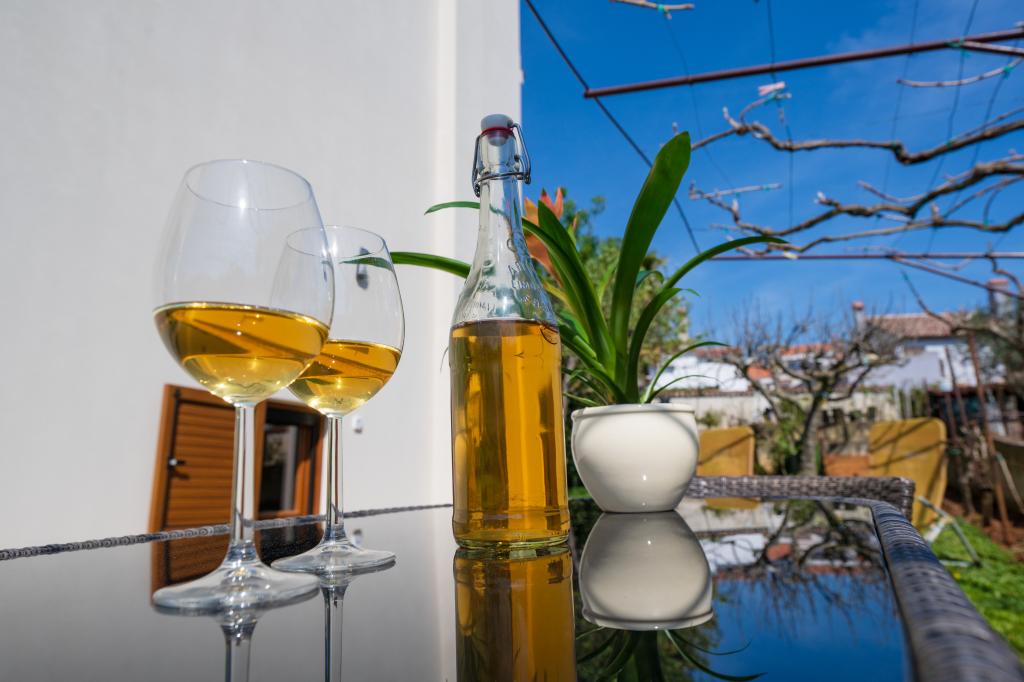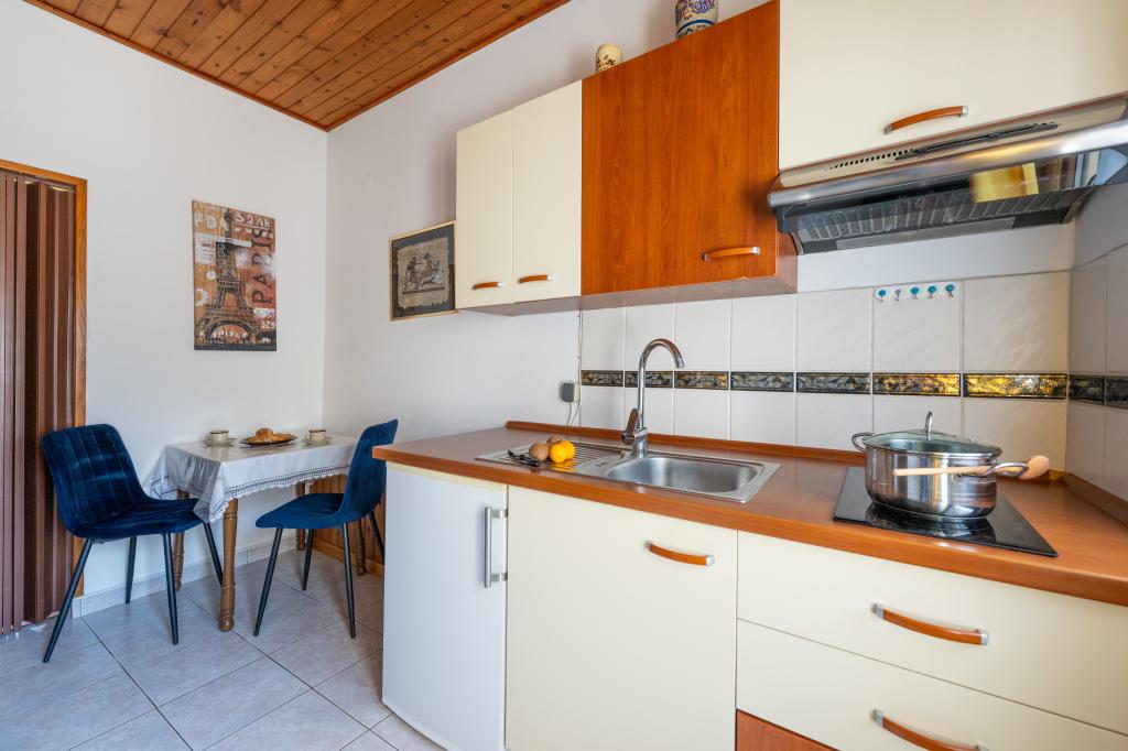 Das Haus liegt in einem ruhigen Teil von Medulin, 250–300 m vom Strand entfernt, mit einem großen Garten und privatem Parkplatz. Es stehen vier komplett und modern ausgestattete Apartments zur Miete bereit. Zwei Apartments befinden sich im Erdgeschoss: Apartment Nr. 1 mit zwei Schlafzimmern, Küche, Wohnzimmer, Bad und Terrasse; Apartment Nr. 2 mit einem Schlafzimmer, Küche, Bad und Gartenterrasse. Im zweiten Stock befindet sich Apartment Nr. 3 mit zwei Schlafzimmern, Küche, Wohnzimmer, Bad und Balkon; Apartment Nr. 4 mit einem Schlafzimmer, Küche, Wohnzimmer, Bad und Balkon. Alle Apartments verfügen über Klimaanlage, WLAN und Sat-TV. Bettwäsche, Handtücher, Kurtaxe und Registrierung sind im Preis inbegriffen. Jedes Apartment hat einen eigenen Parkplatz, einen Garten und einen tragbaren Grill. Waschmaschinenmiete: 5 Euro, Zustellbett: 10 Euro. Parkplatz und Hof sind videoüberwacht.