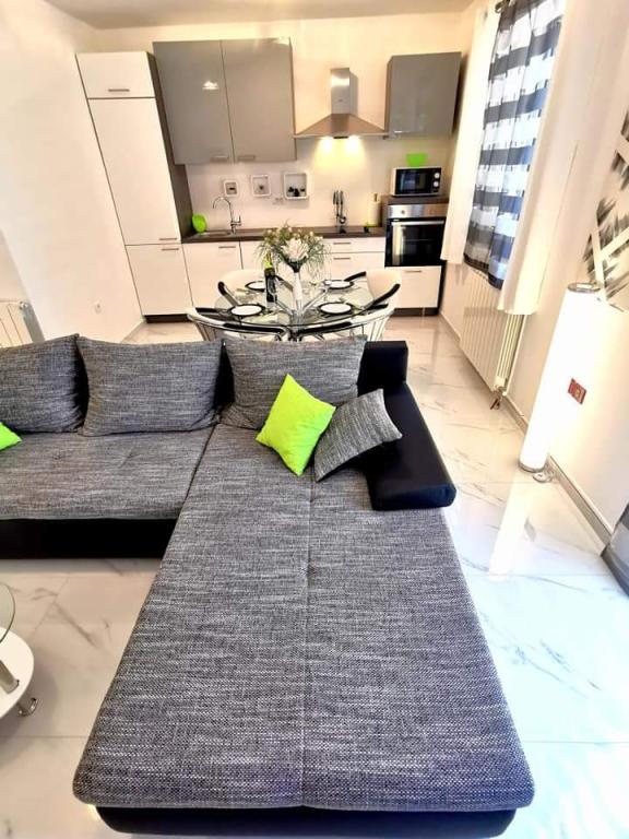 Die Gesamtkapazität der gesamten Anlage beträgt 26 Personen und eignet sich für Sportmannschaften und größere Personengruppen. Voll ausgestattete Apartments in einem ruhigen Teil von Medulin, direkt über dem Hotel und dem Fußballplatz. 10 Gehminuten zum Sandstrand, 5 Gehminuten ins Zentrum. Der angelegte Garten mit Rasen lädt zum Ausruhen und Spielen für Kinder ein. Für jede Wohnung stehen Parkplätze vor dem Gebäude zur Verfügung. Die Garage steht für Fahrräder, Wohnmobile, Motorräder und alle großen Dinge für das Meer zur Verfügung... Ideal für Motorradfahrer oder Radfahrer oder Surfer. Elektrofahrzeuge können in der Garage aufgeladen werden.