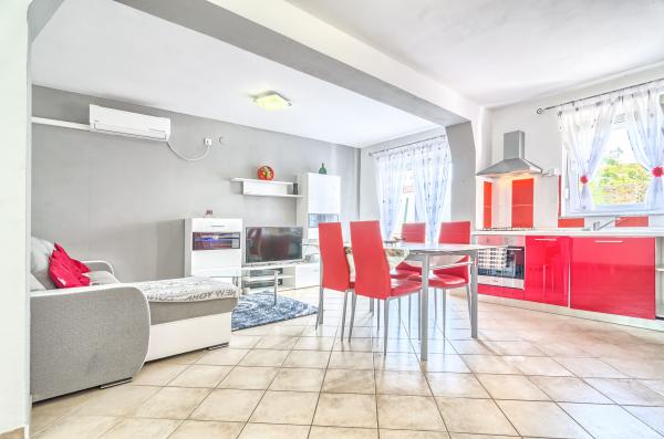 Die Apartments Marin in einem ruhigen Teil von Medulin, im Dorf Pošesi, bieten Ihnen eine voll ausgestattete Wohnung: im Erdgeschoss eine Zweizimmerwohnung mit 4 Betten, nur fünfzig Schritte vom Strand entfernt mit Blick auf das Meer, Parkplatz und ein Whirlpool im Erdgeschoss. Whirlpool gegen Aufpreis von 15 €/Tag. Entfernung zum berühmten Sandstrand von Bjeca 800 m.